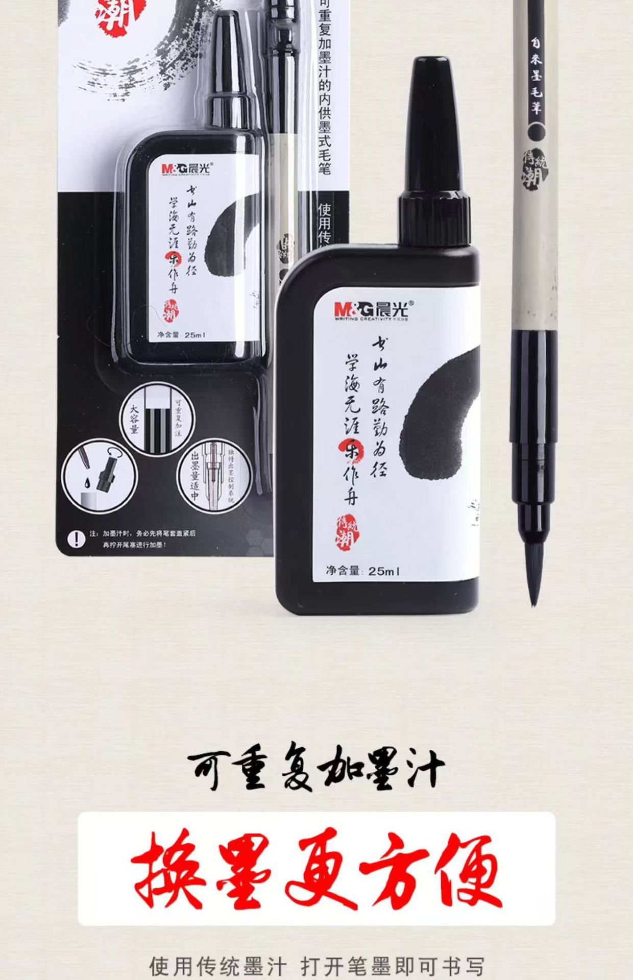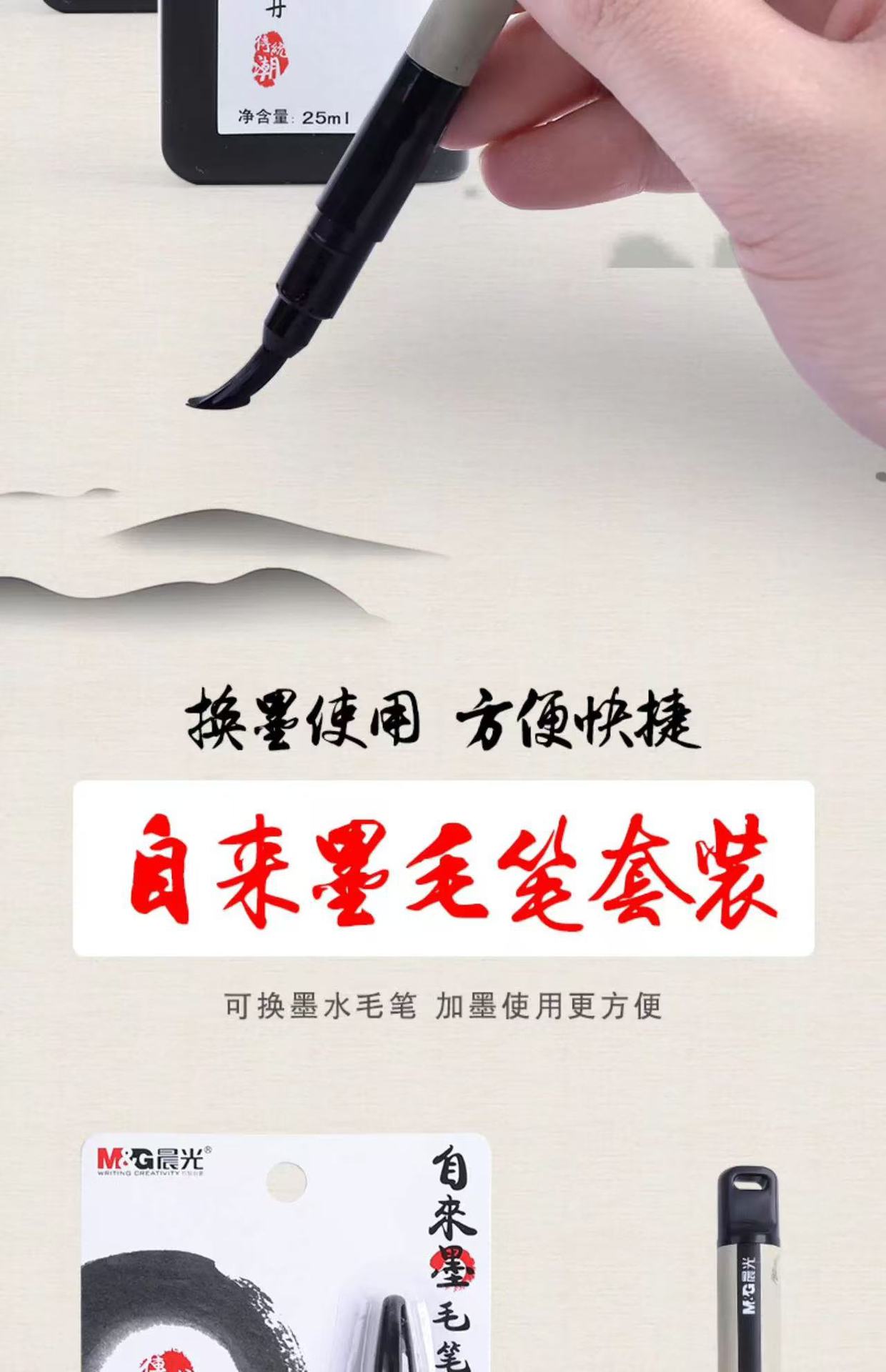 Chenguang Zilai 잉크 브러시 사인 펜 사인 펜 소프트 헤드 펜 소프트 브러시 학생 서예 연습은 잉크 세트 추가 할 수 있습니다