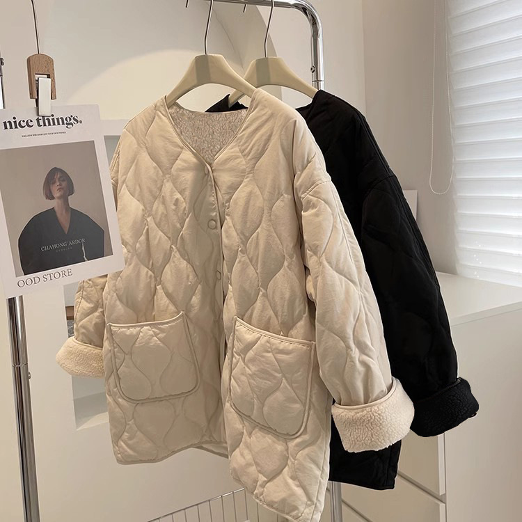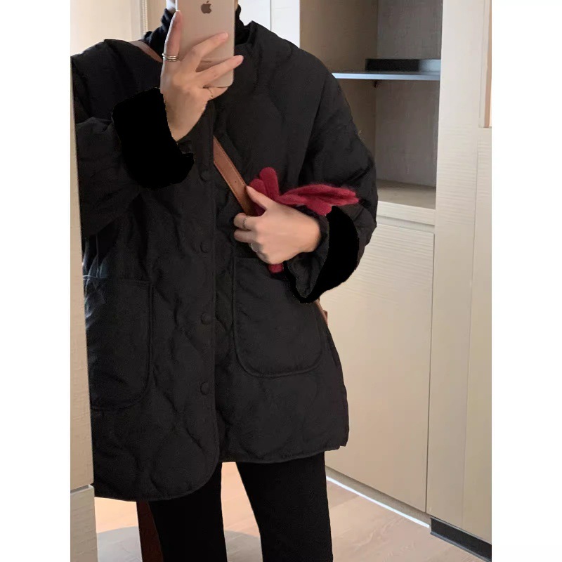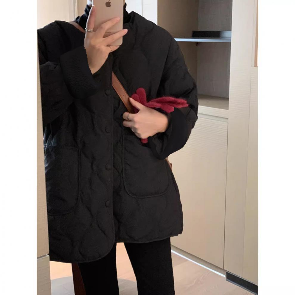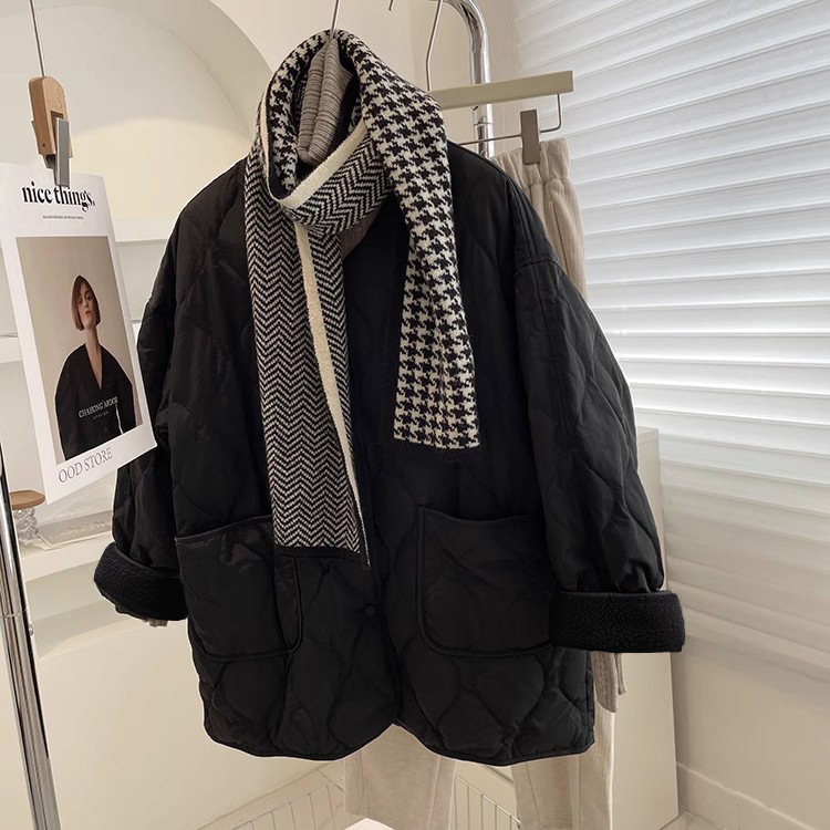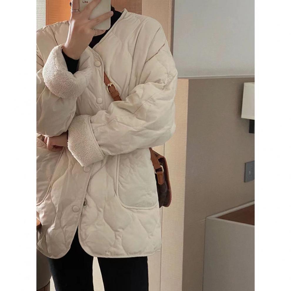 콜라리스 양모 경량 인즈 겨울면 패딩 코트 한국식 느슨한 샤넬 스타일 마름모꼴 따뜻한 양털 패딩 코트스토어 가기