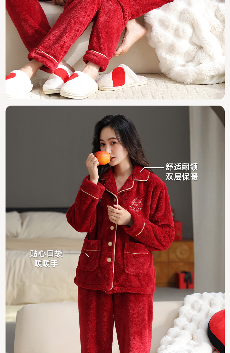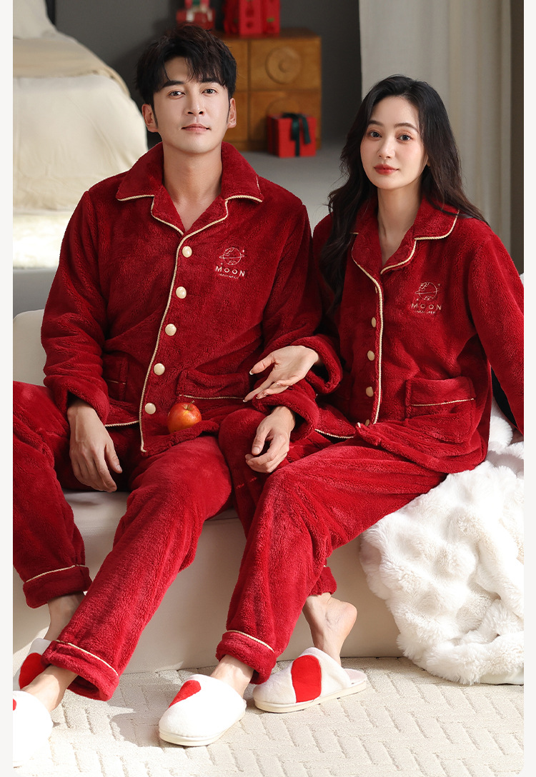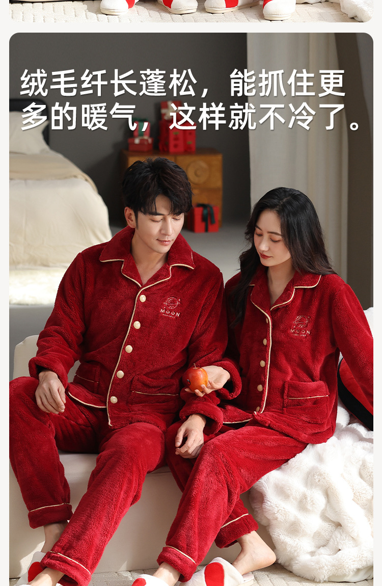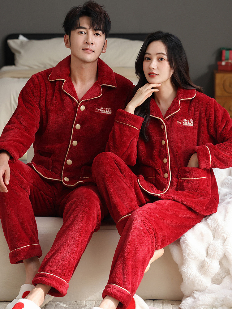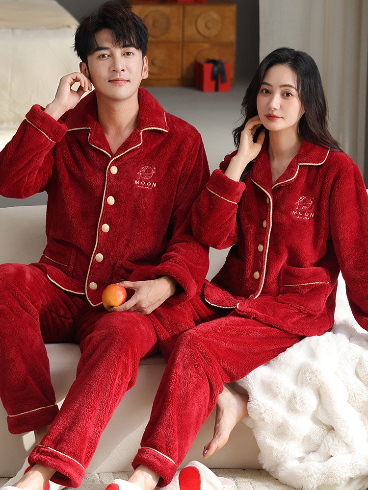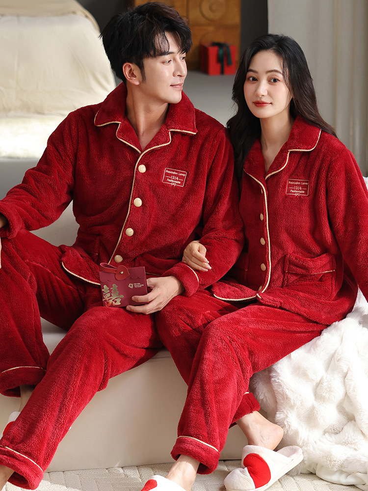 파자마 웨딩 신혼 부부 세트 가을과 겨울 봉제 남자와 여자의 산호 양털 세트 겨울 2024 새로운 두껍게스토어 가기
