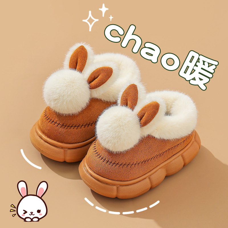 2024 새로운 어린이 면화 가을 및 겨울 느낌 배설물 실내 및 실외 두꺼운 따뜻한 중대형 어린이 아기 면화 슬리퍼