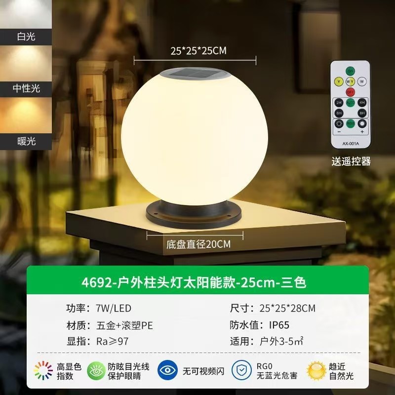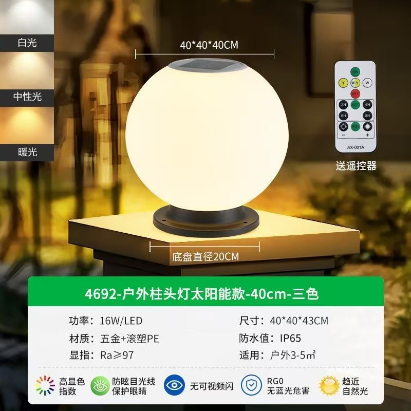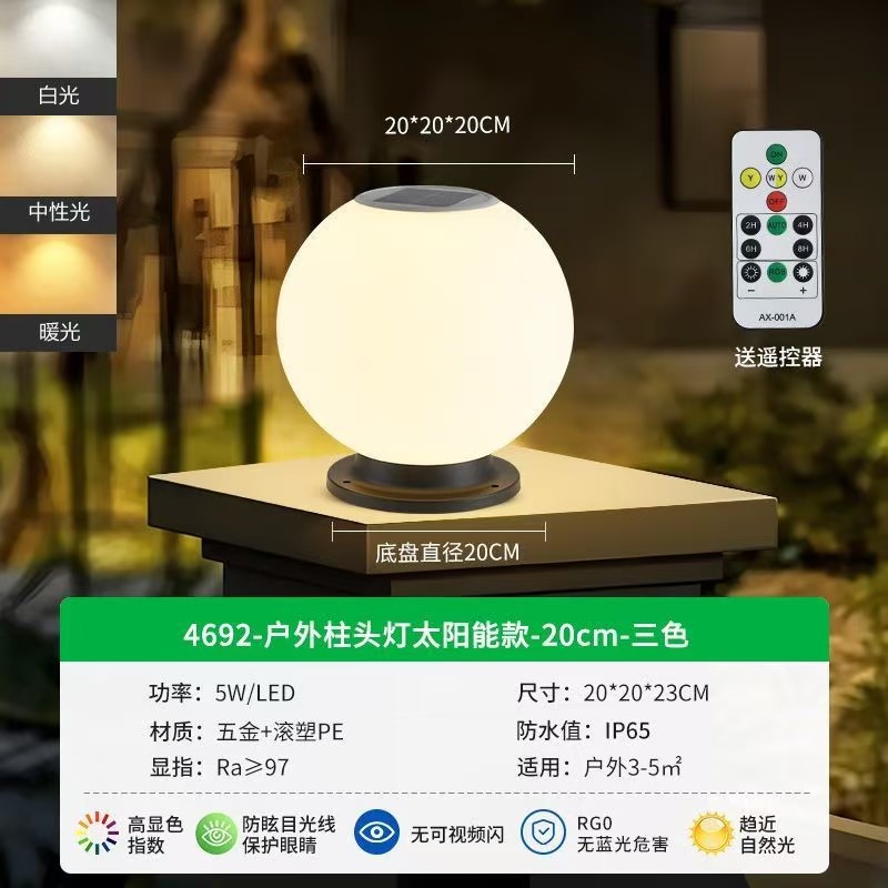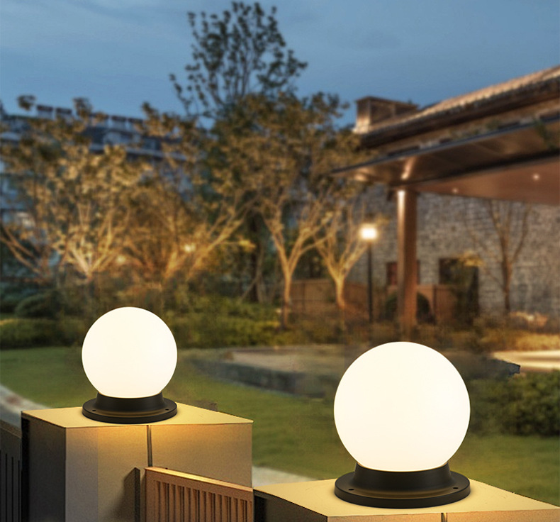 새로운 태양 기둥 램프 야외 방수 라운드 볼 문 램프 안뜰 정원 빌라 울타리 게이트 기둥 램프
