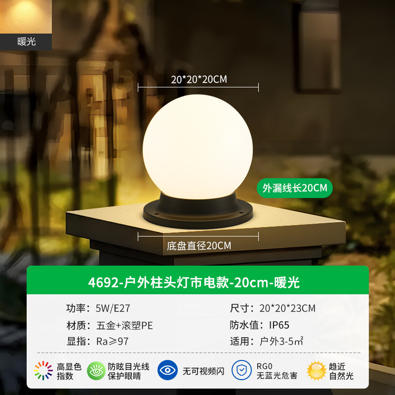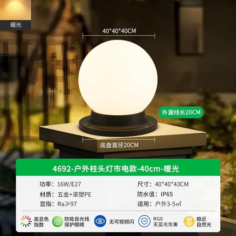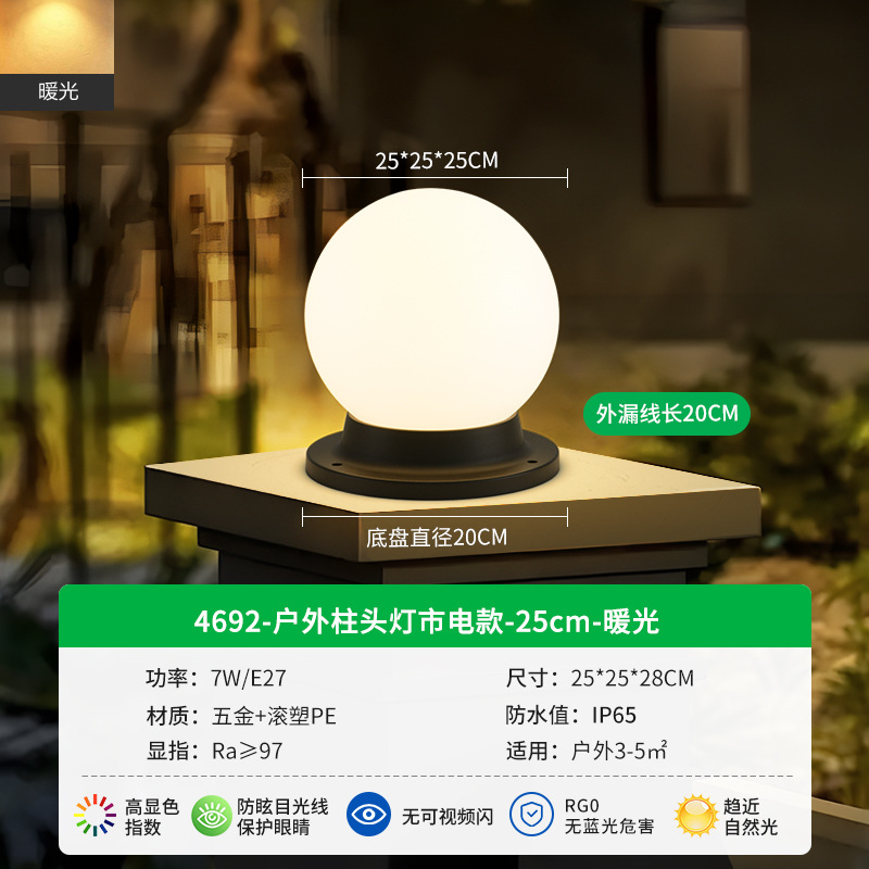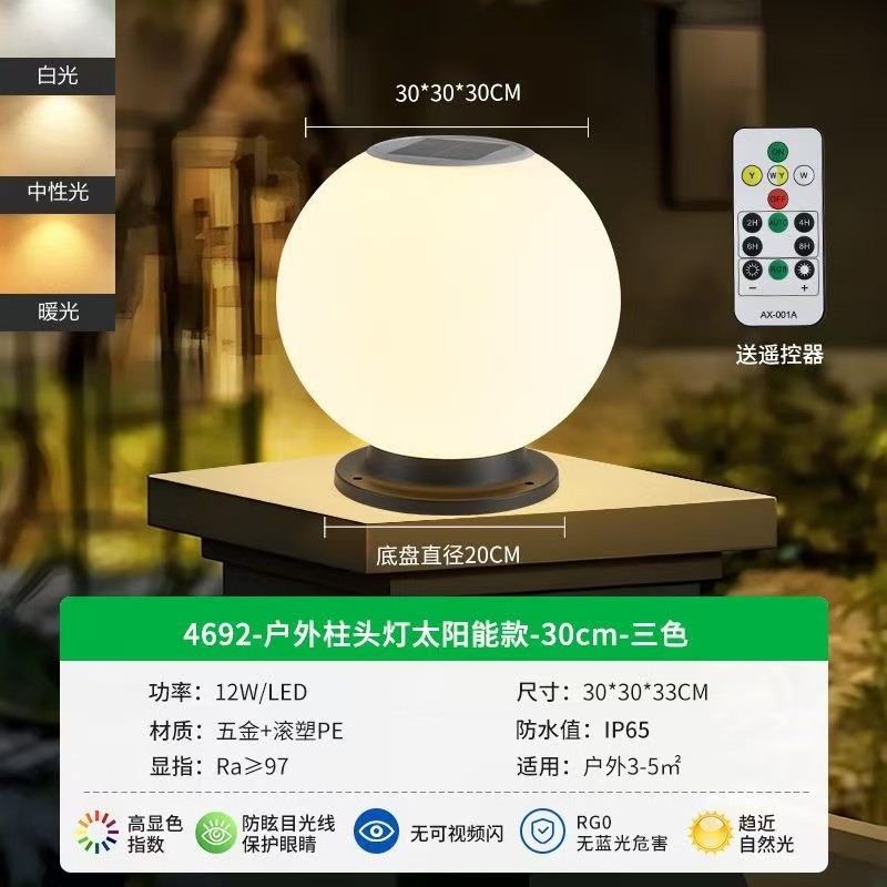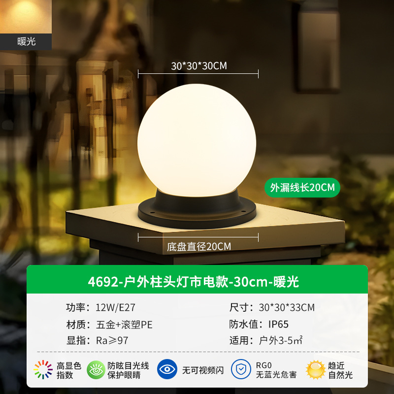 새로운 태양 기둥 램프 야외 방수 라운드 볼 문 램프 안뜰 정원 빌라 울타리 게이트 기둥 램프스토어 가기