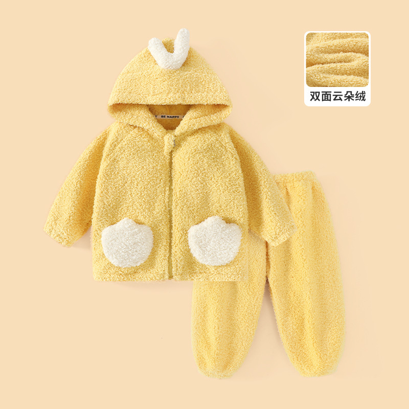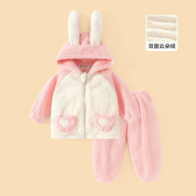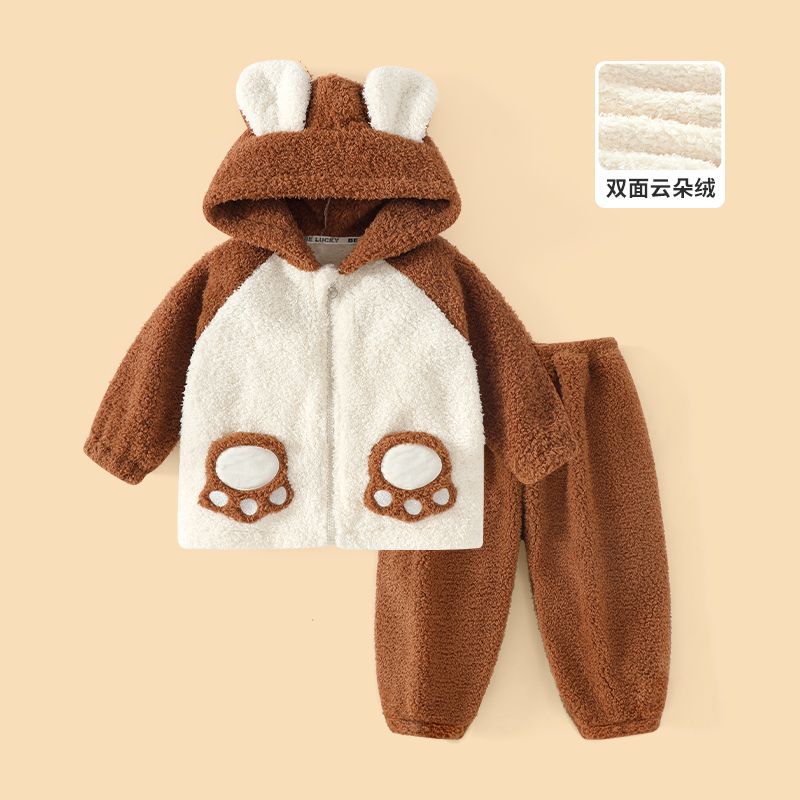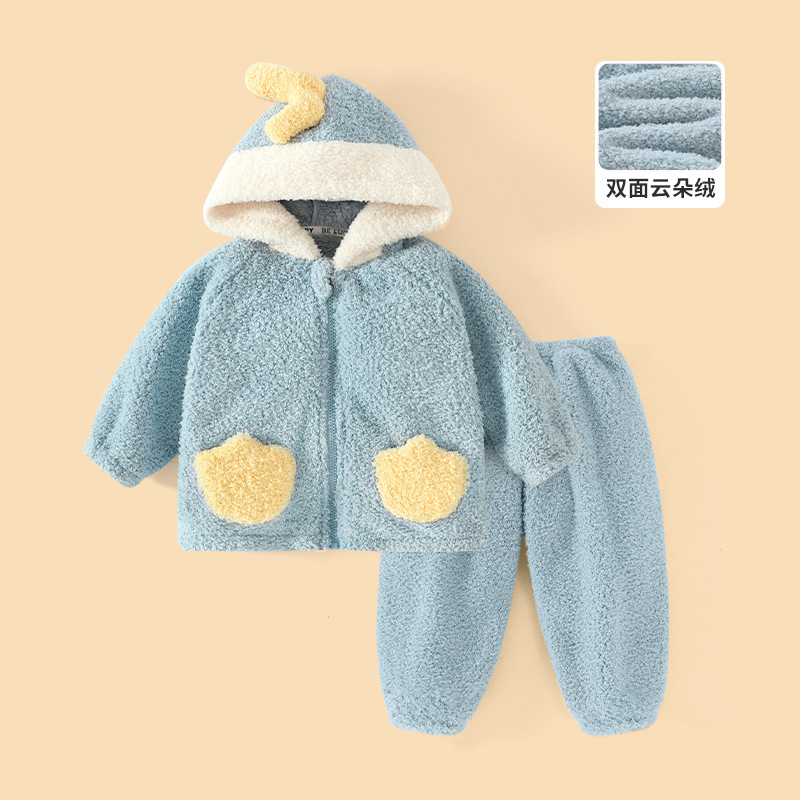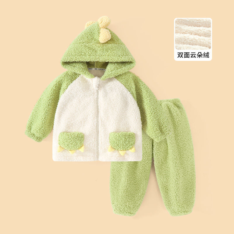 어린이 기모 두꺼운 따뜻한 집 옷 소년과 소녀 가을 옷 가을 바지 속옷 아기 겨울 잠옷 세트