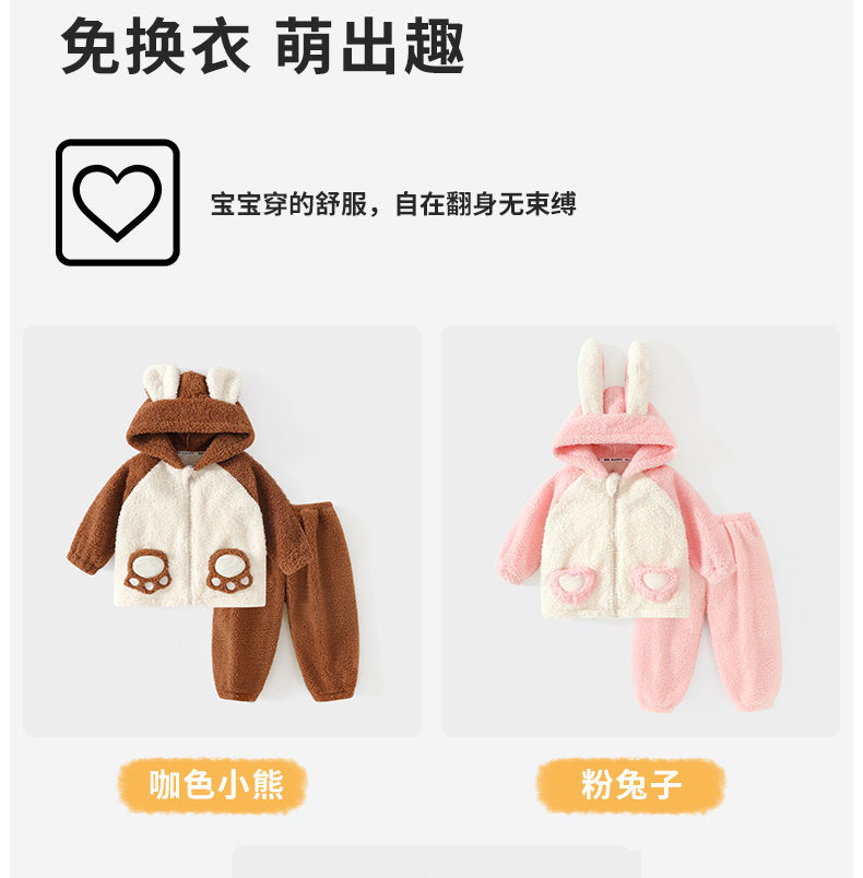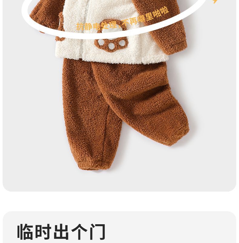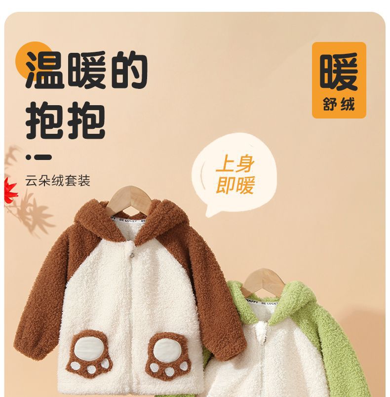 어린이 기모 두꺼운 따뜻한 집 옷 소년과 소녀 가을 옷 가을 바지 속옷 아기 겨울 잠옷 세트스토어 가기