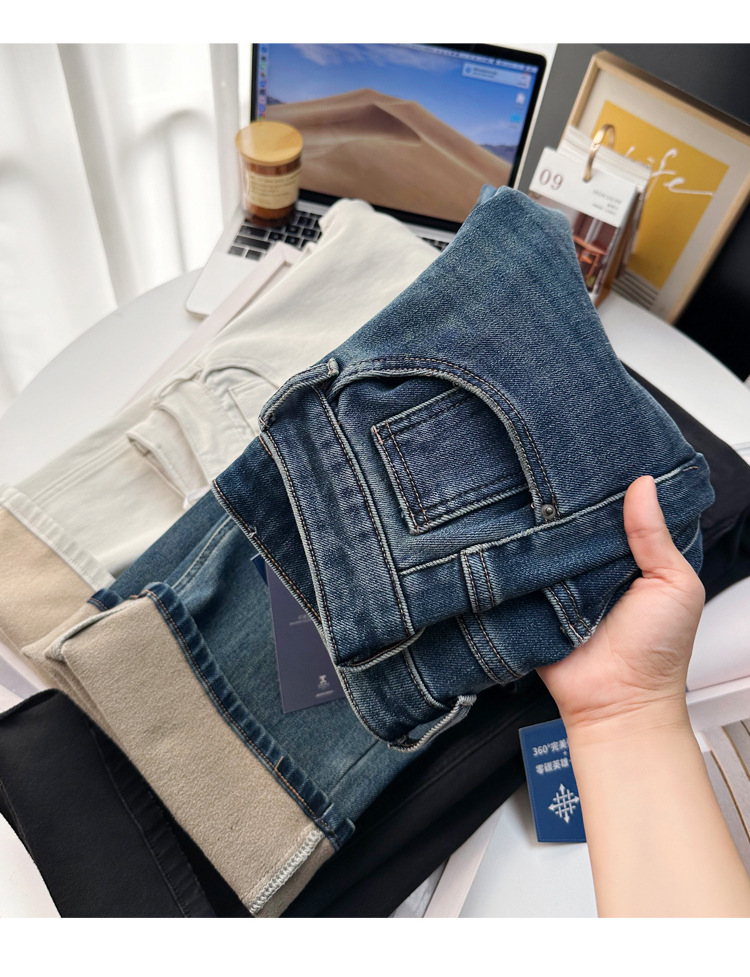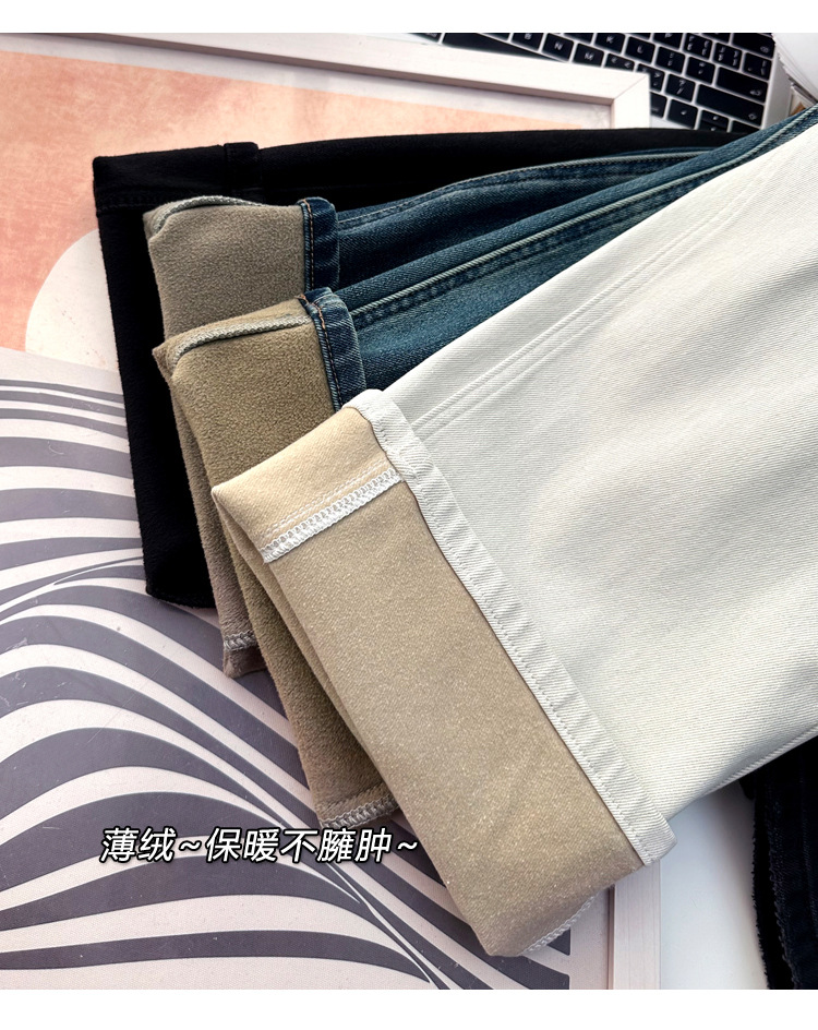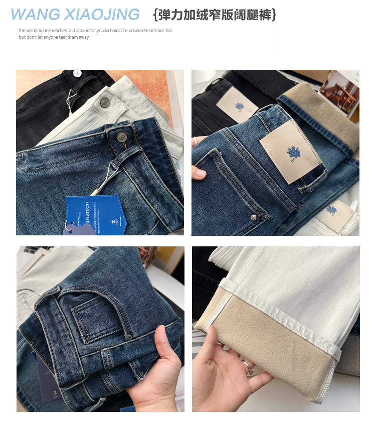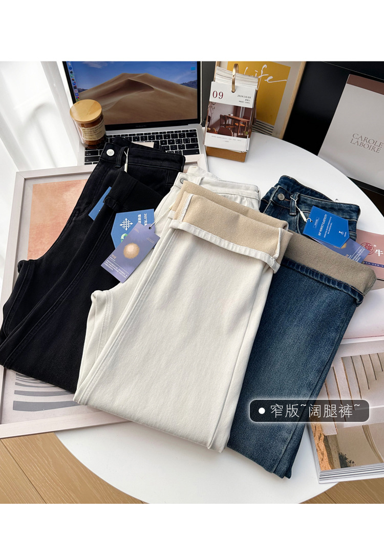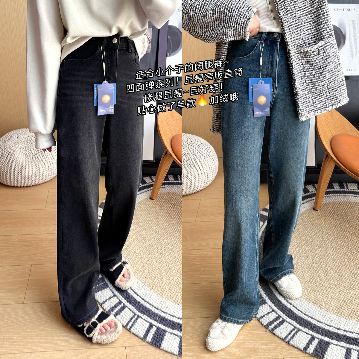 왕 튀김 좋은 상품! 가을과 겨울 4 면 탄성 좁은 기모 청바지 여성 휴식 좁은 연약한 와이드 레그 바지스토어 가기