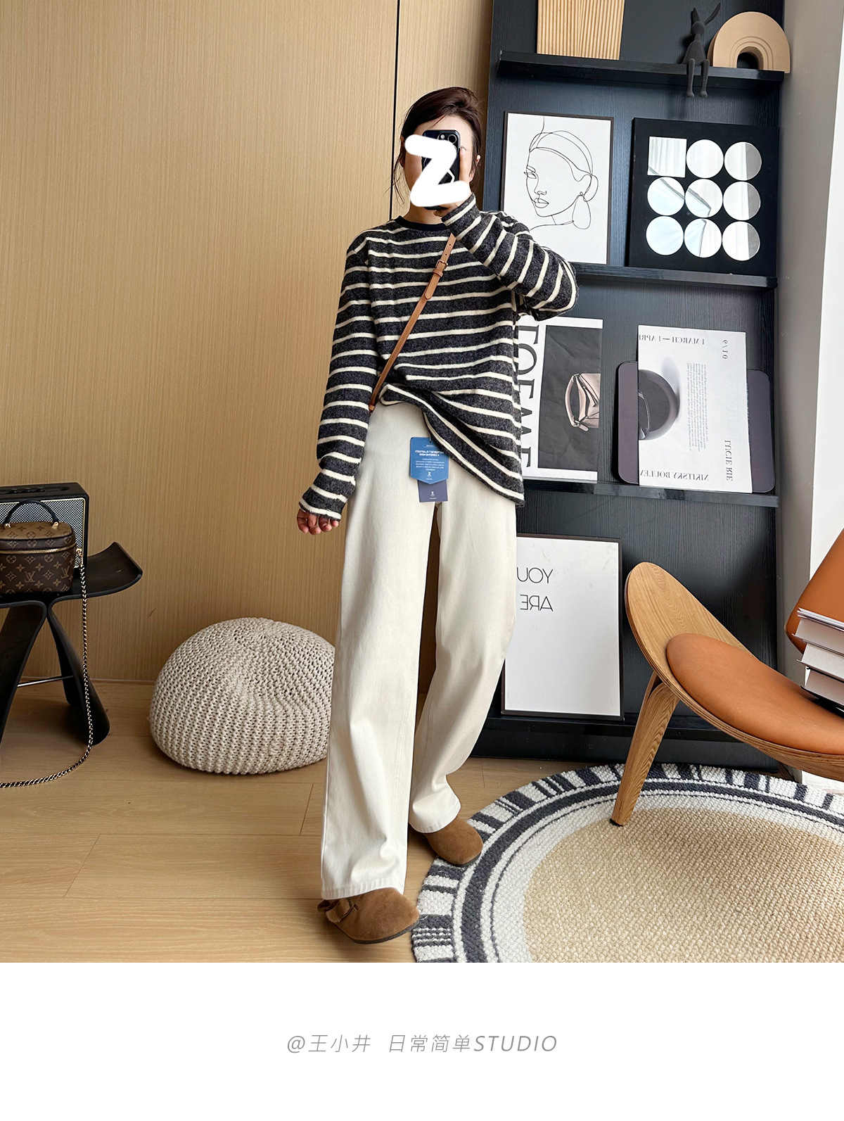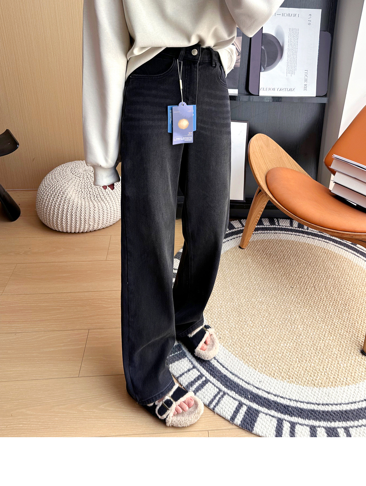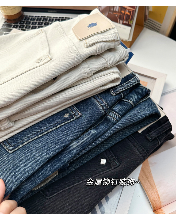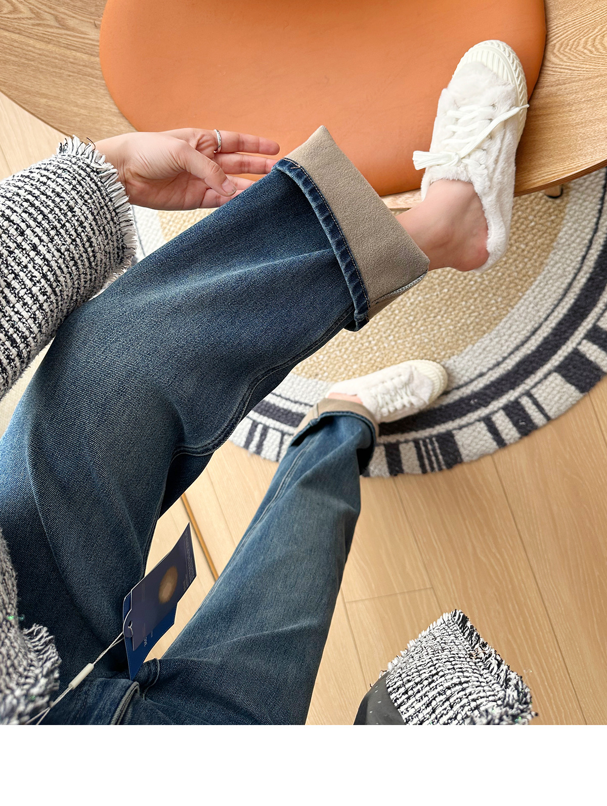 왕 튀김 좋은 상품! 가을과 겨울 4 면 탄성 좁은 기모 청바지 여성 휴식 좁은 연약한 와이드 레그 바지스토어 가기
