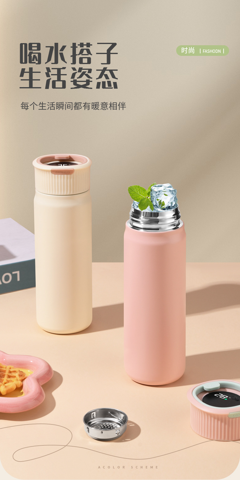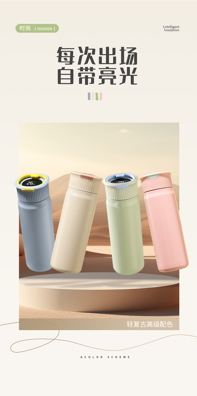 새로운 스테인레스 스틸 머그잔 지능형 온도 측정 간단한 신선한 휴대용 컵 여성 학생 비즈니스 선물 컵 도매