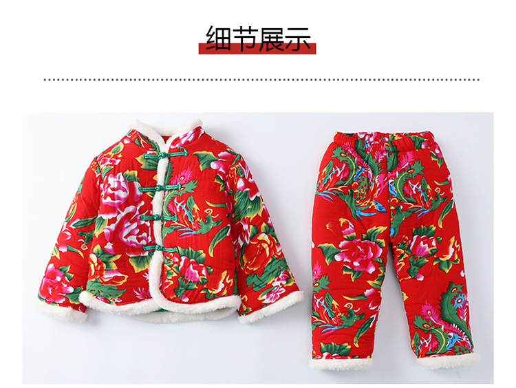 소녀 동북 꽃 코트 면화 패딩 재킷 면화 패딩 바지 세트 중소 어린이 소년 아기 따뜻한 면화 패딩 재킷 투피스 겨울 옷