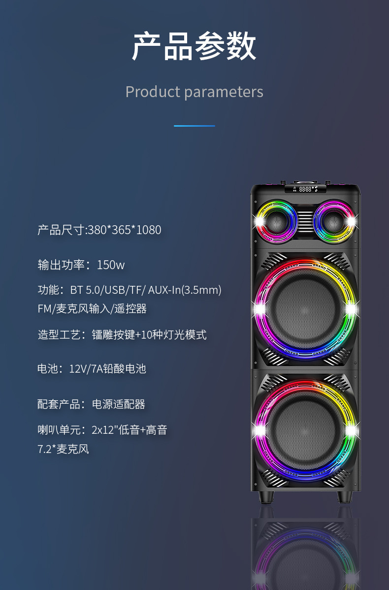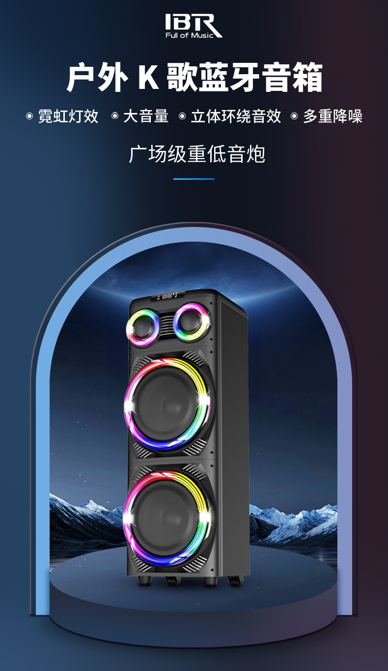 마이크 K-노래 오디오가있는 IBR 야외 스퀘어 파티 휴대용 블루투스 스피커 고성능 서브 우퍼 홈