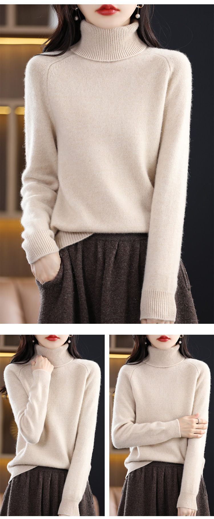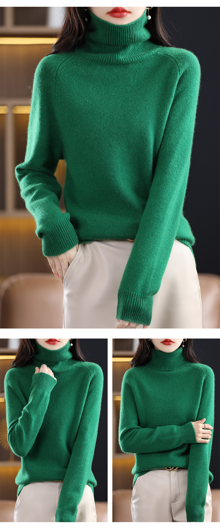 2022秋冬新款高领毛衣女士高翻领宽松百搭针织打底衫女外穿