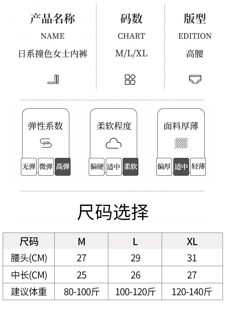 여성용 대비 색상 고탄성 속옷 모달 순수 코튼 심리스 코튼 가랑이 여아용 새로운 중간 허리 여름 얇은 통기성 바지