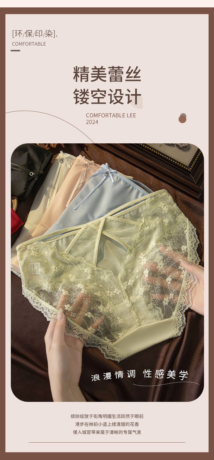 프렌치 스타일 라이트 럭셔리 속옷 여성용 섹시한 레이스 하이 엔드 퓨어 욕망 스타일 스위트 핫 패션 씬 할로우 아웃 브리프