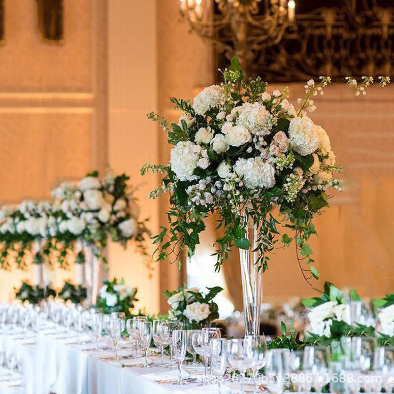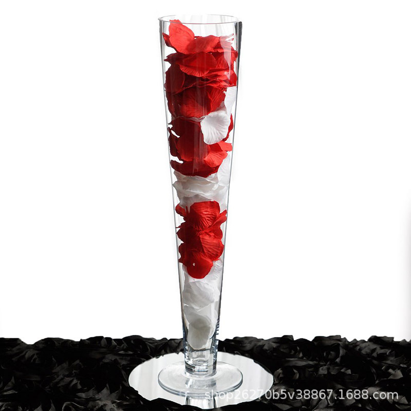 수제 두꺼운 1급 V자형 유리 꽃병, 식탁 꽃꽂이, 수경 꽃, 웨딩 로드 유리 꽃병