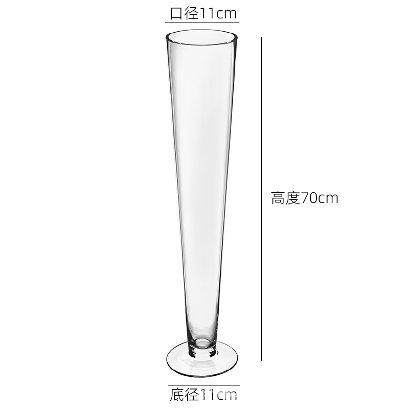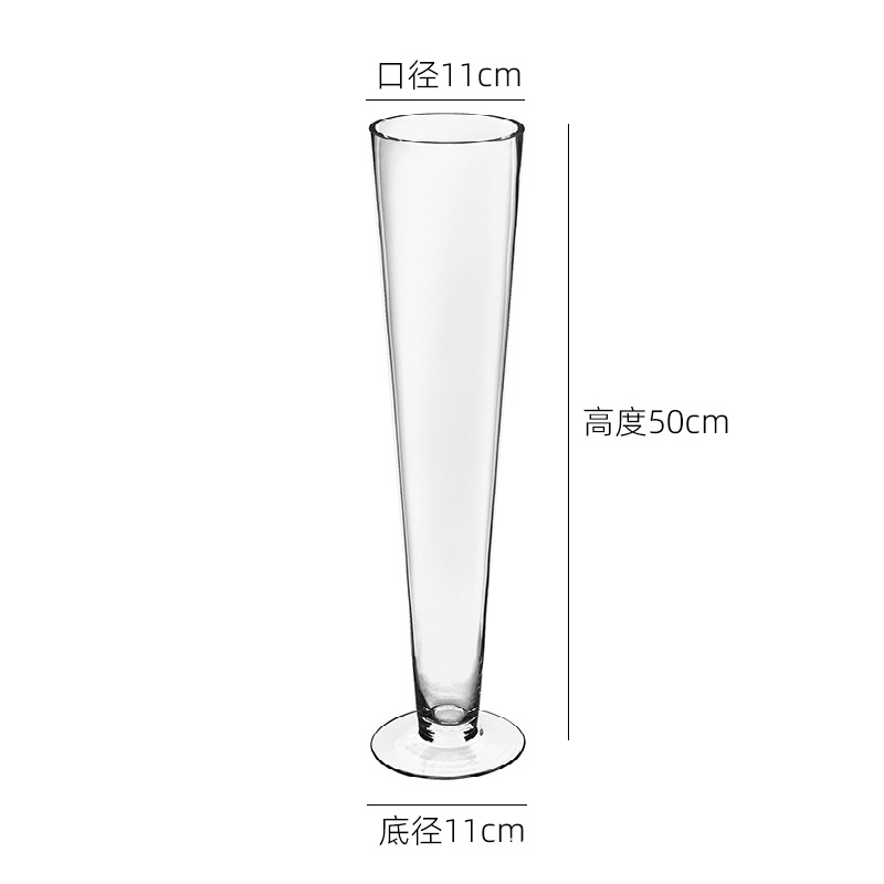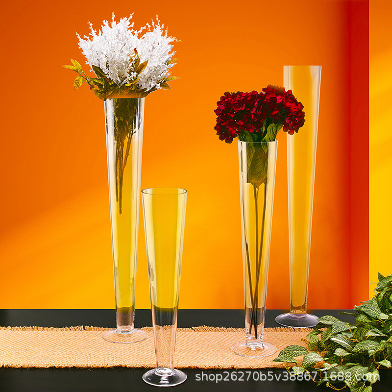 수제 두꺼운 1급 V자형 유리 꽃병, 식탁 꽃꽂이, 수경 꽃, 웨딩 로드 유리 꽃병스토어 가기