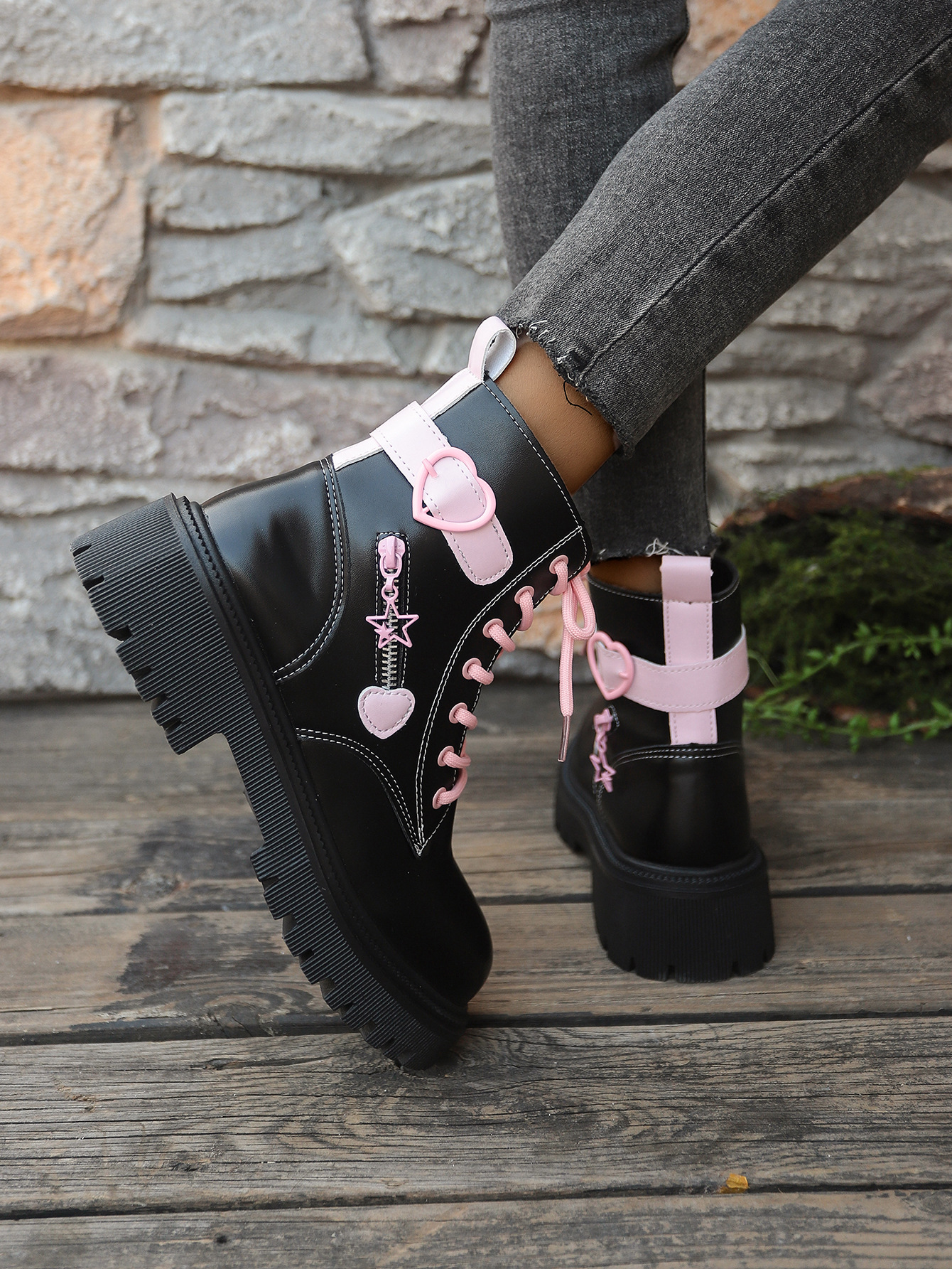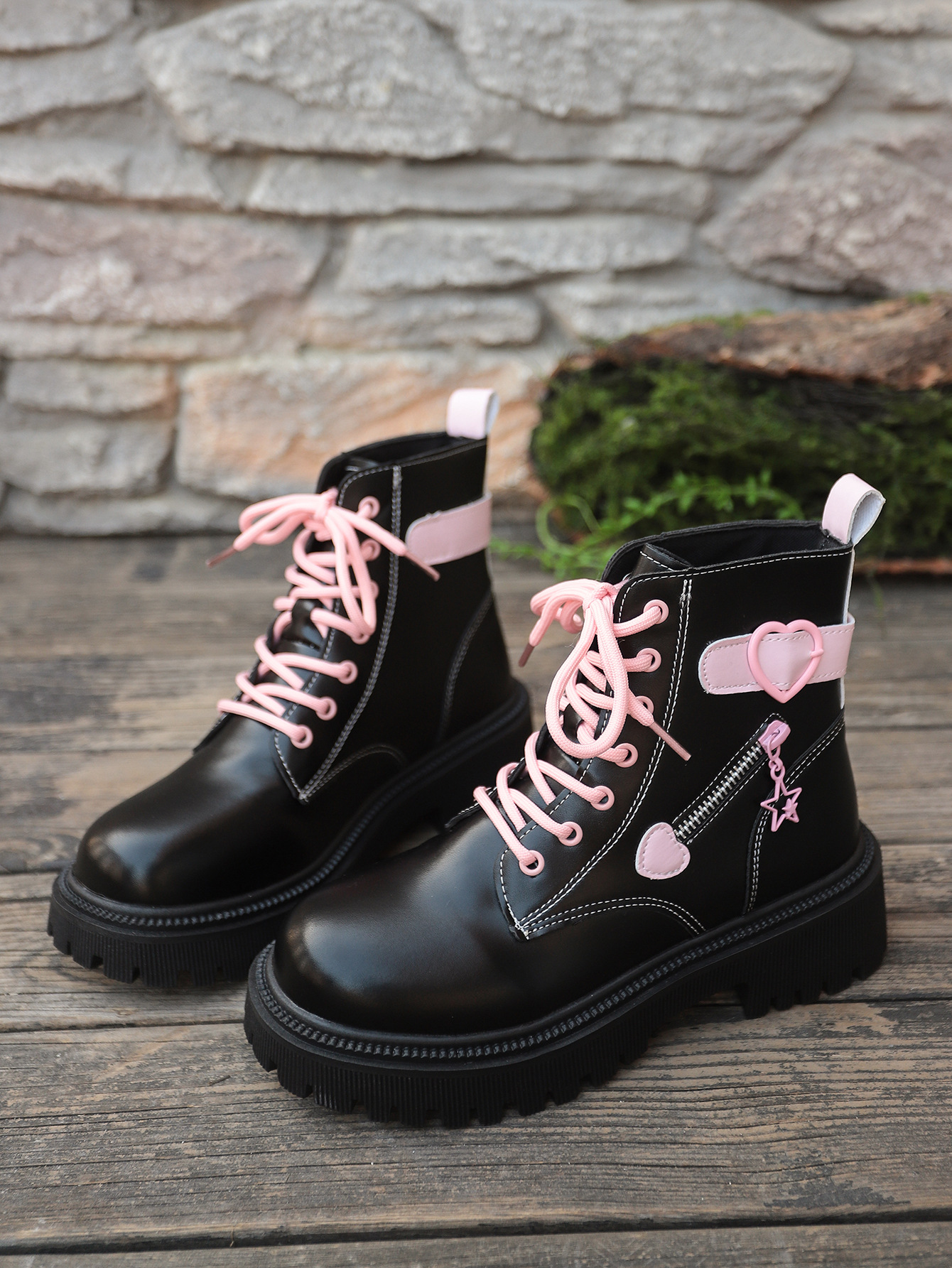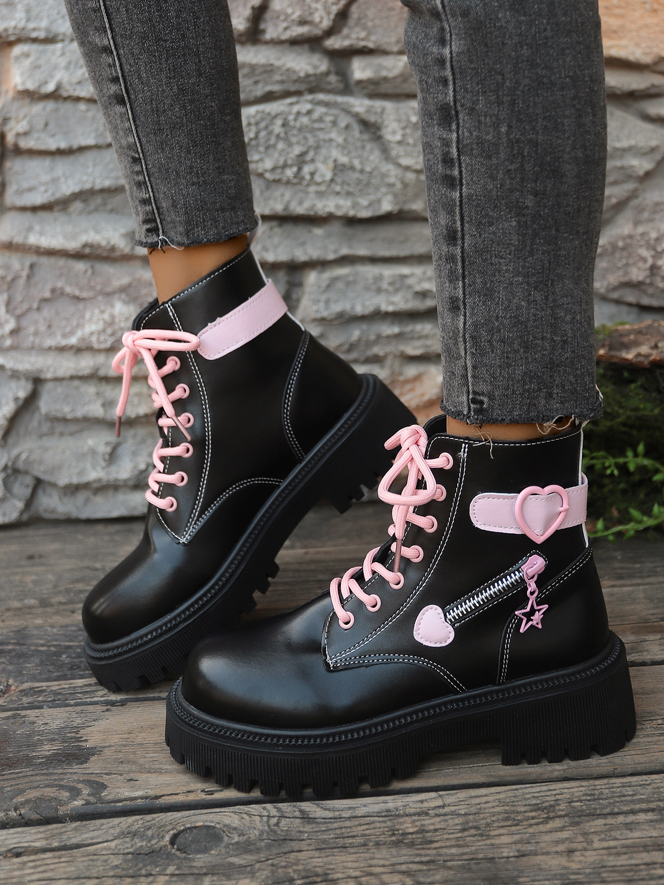 여성용 가리 핑크 러브 마틴 부츠 2025 가을 두꺼운 밑창 영국 스타일 학생 숏부츠, 발을 더욱 작아 보이게 해주는 트렌디한 레이스업 싱글 부츠