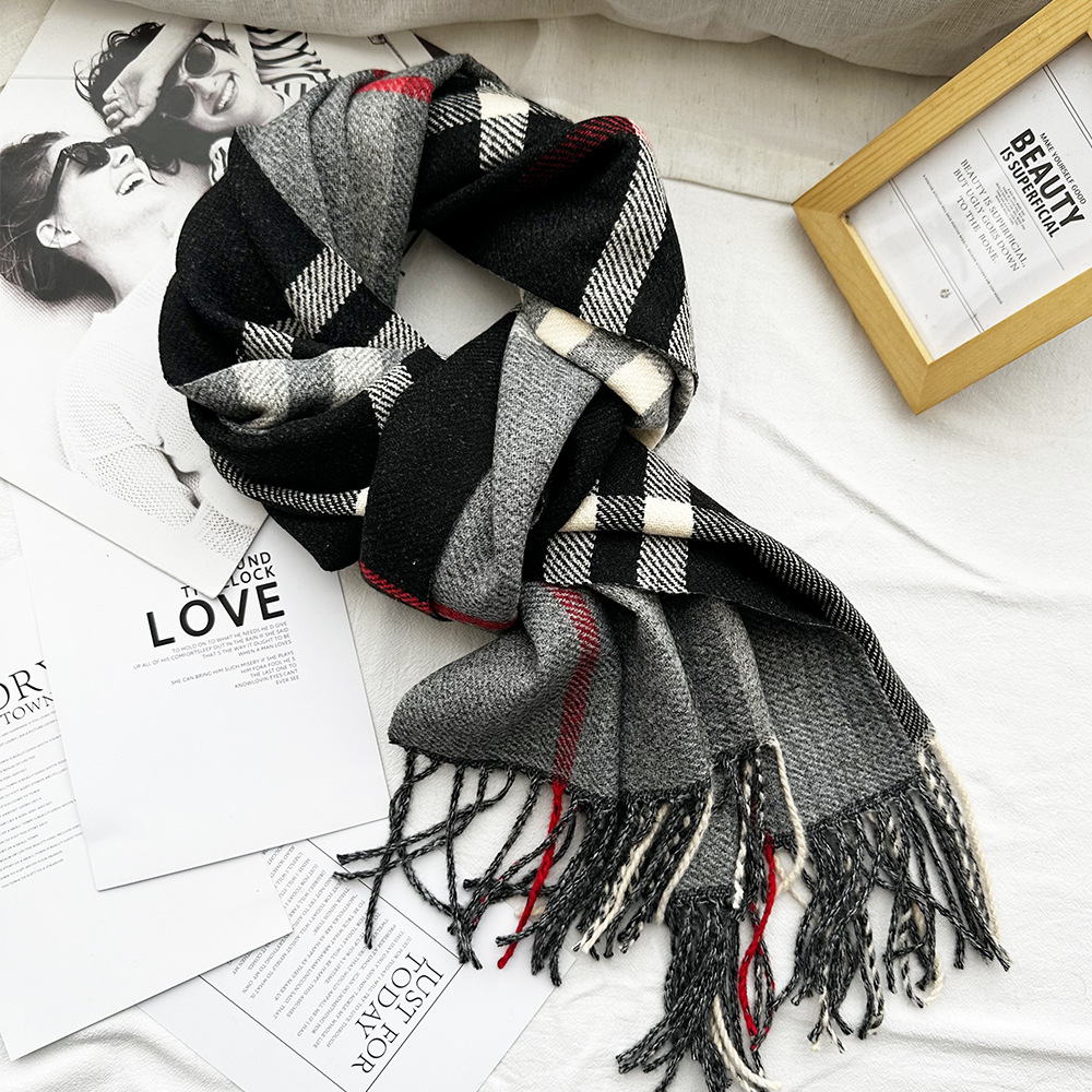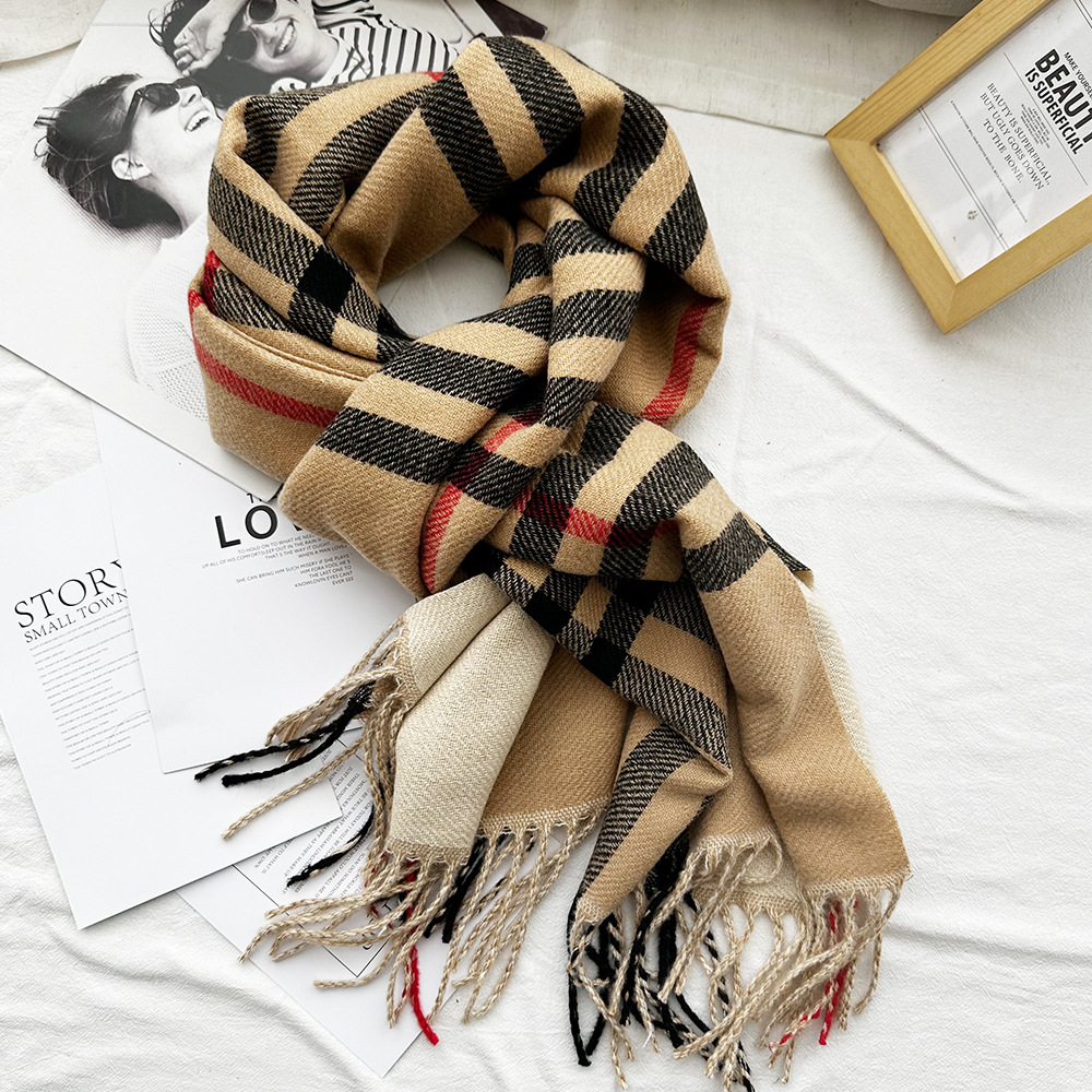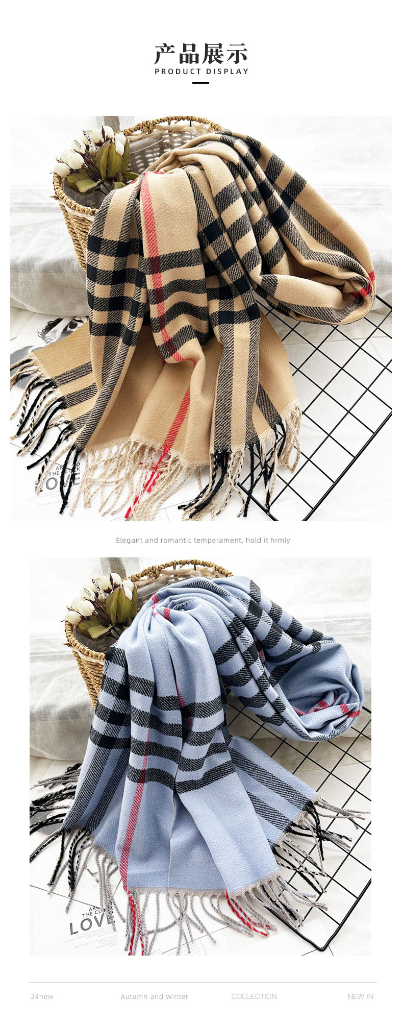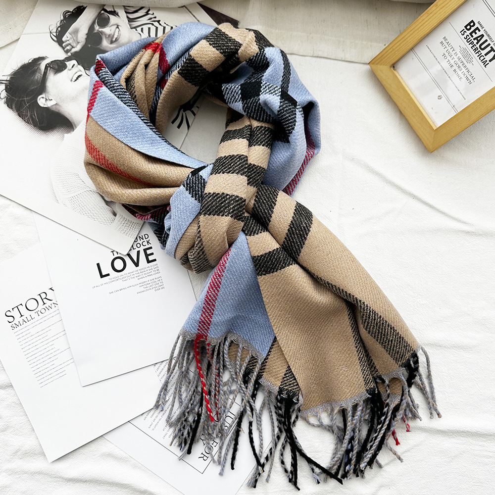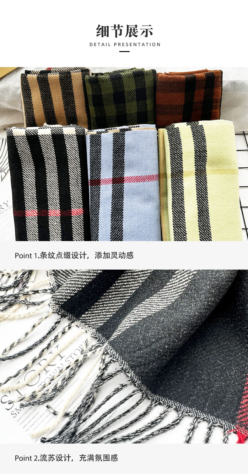 디자인 센스 양면 컬러 체크 무늬 스카프 대학 스타일 가을과 겨울 따뜻한 부드러운 왁스 두꺼운 술 커플 스카프스토어 가기