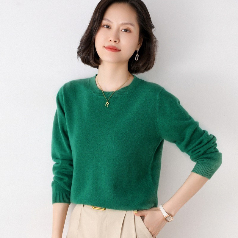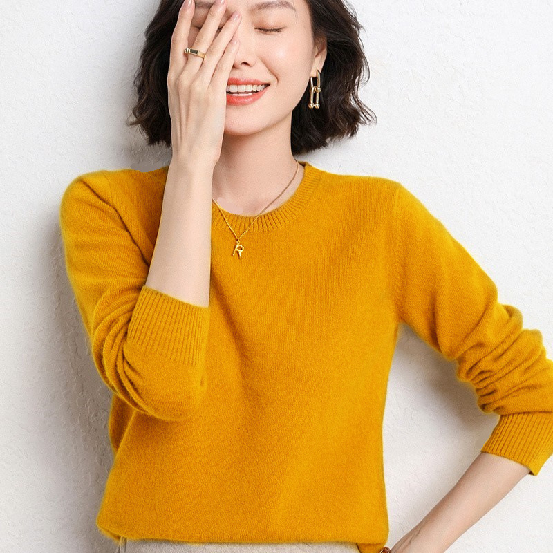 2024 봄과 가을 새로운 여성 니트웨어 풀오버 크루 넥베이스 셔츠 긴 소매 풀오버 스웨터 여성용 도매 헤어스토어 가기