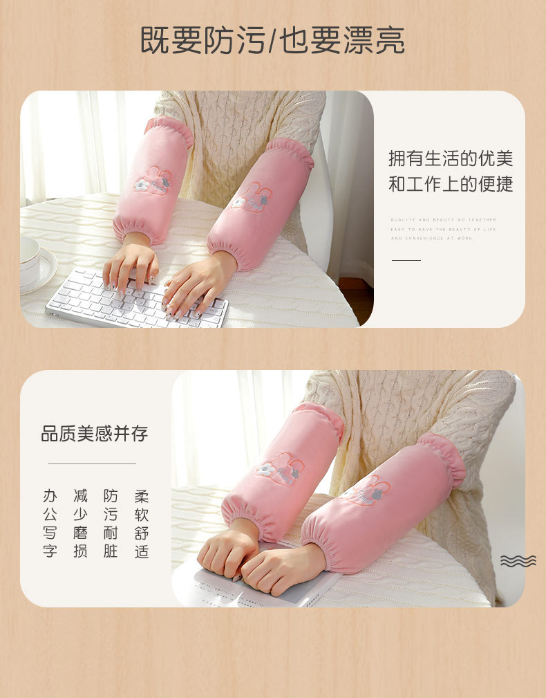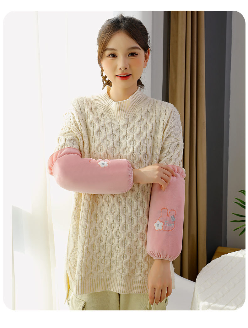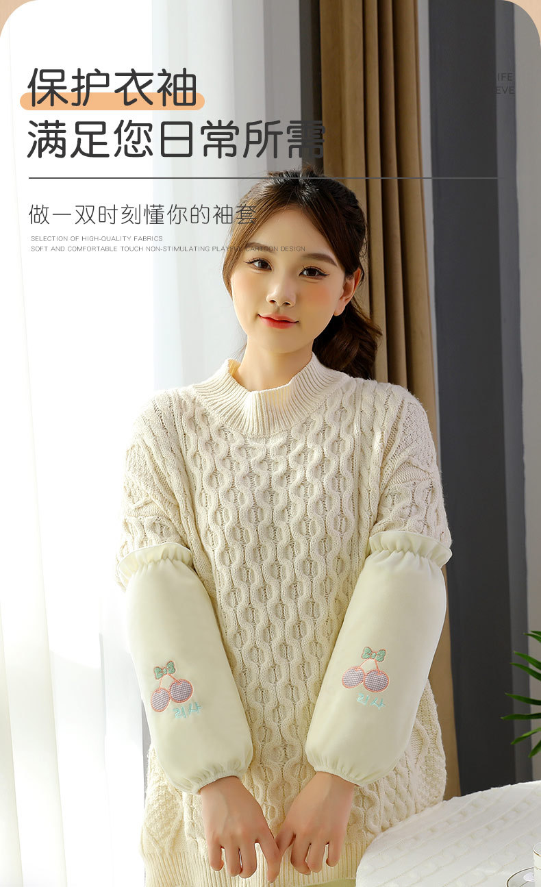 YHI 여성을위한 새로운 가을, 겨울 슬리브, 귀여운 수 놓은 슬리브, 긴 사무실 학생 짧은 만화 플러시 슬리브