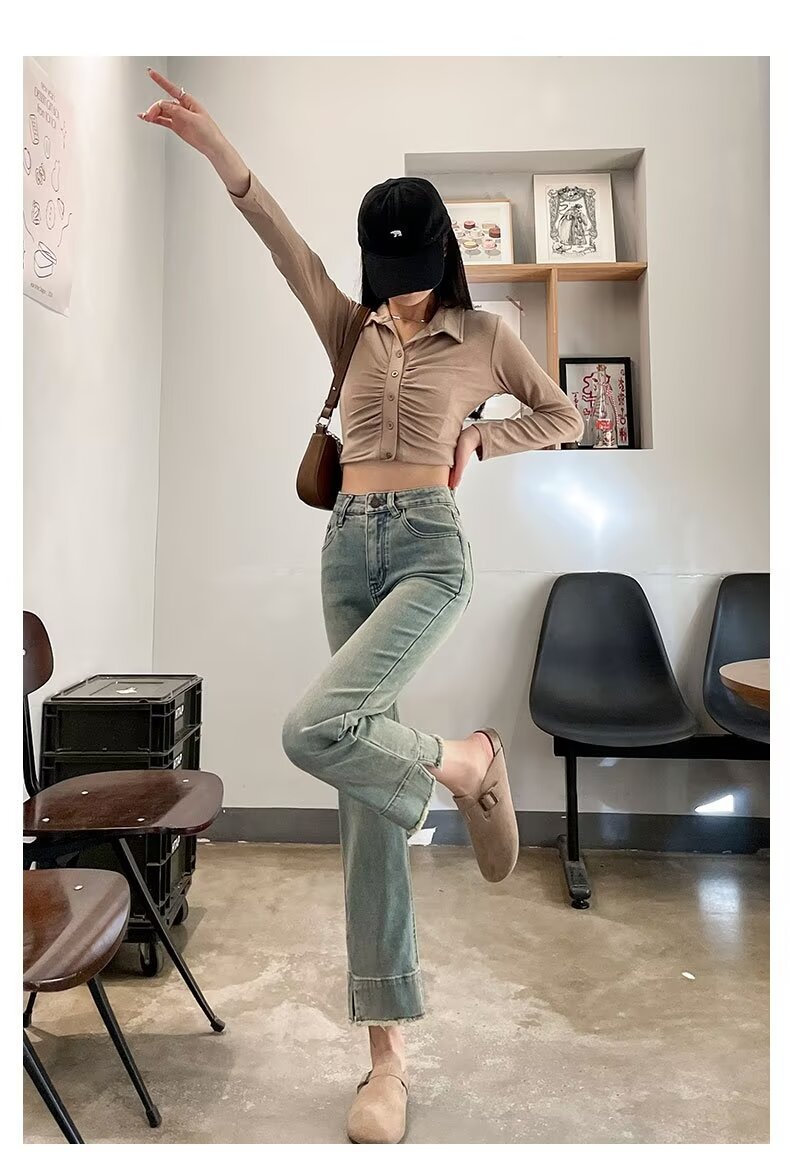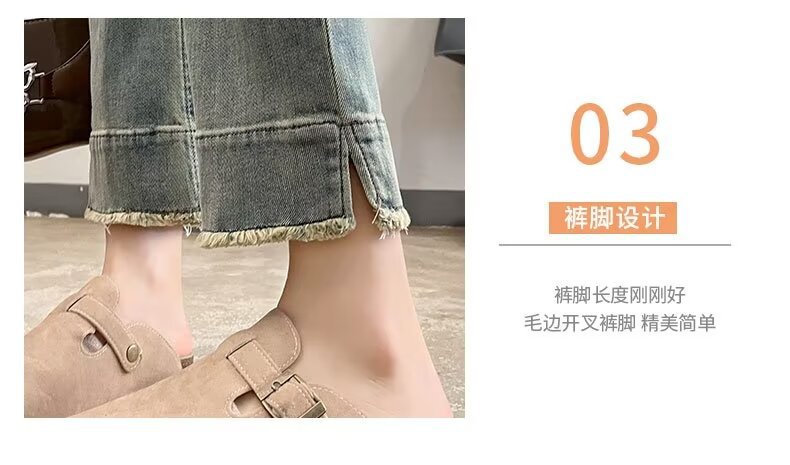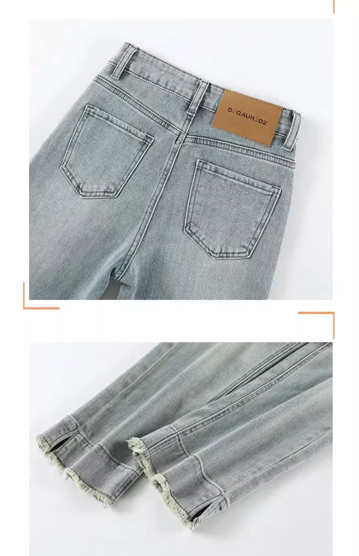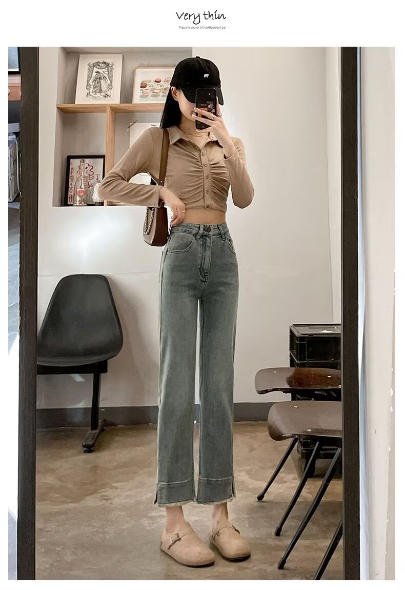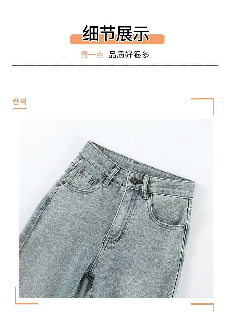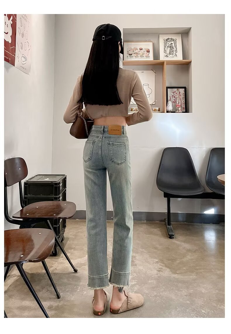 라이트 블루 분할 연기 튜브 청바지 여성의 봄 새로운 도착 작은 남자 헝겊 레트로 좁은 판 직선 바지스토어 가기