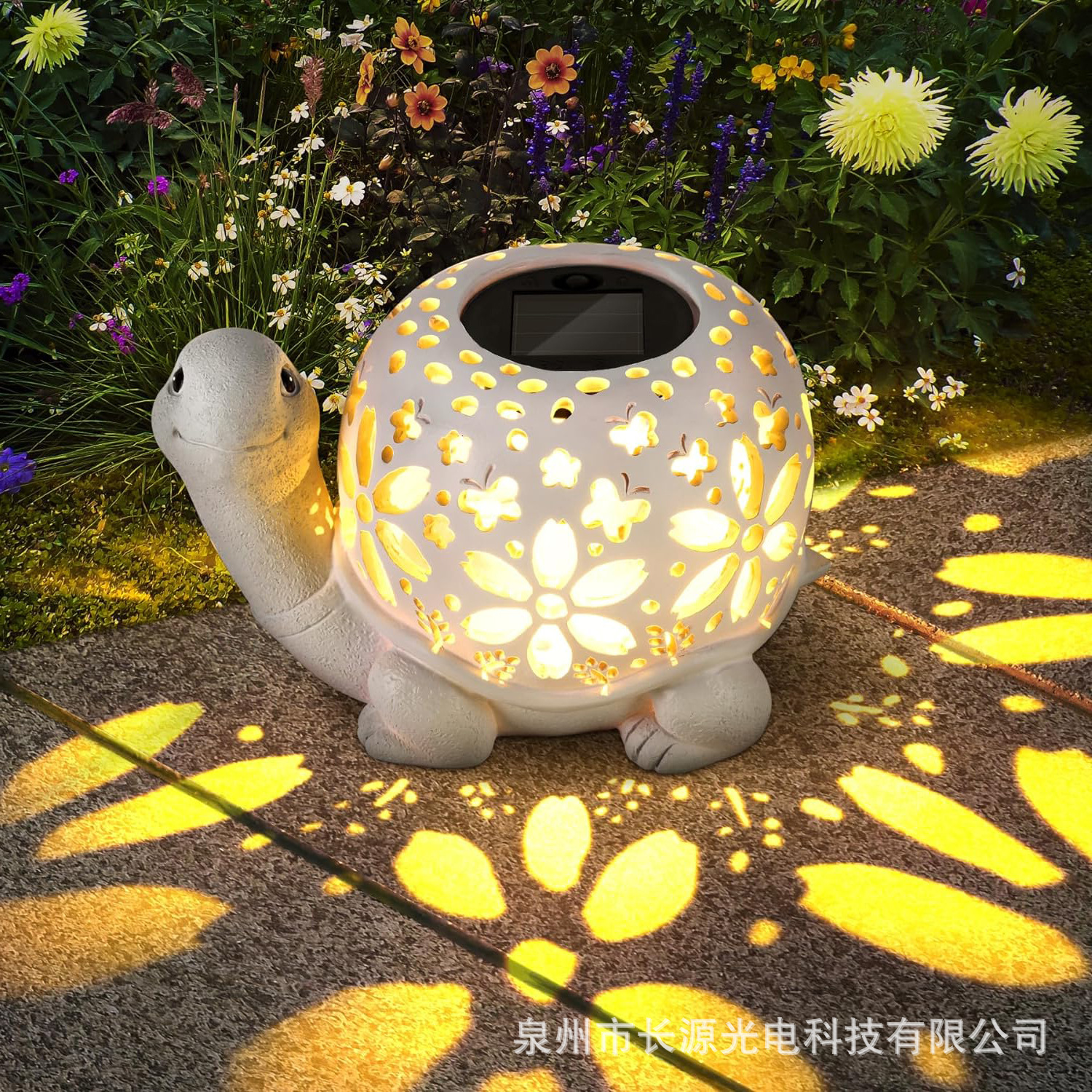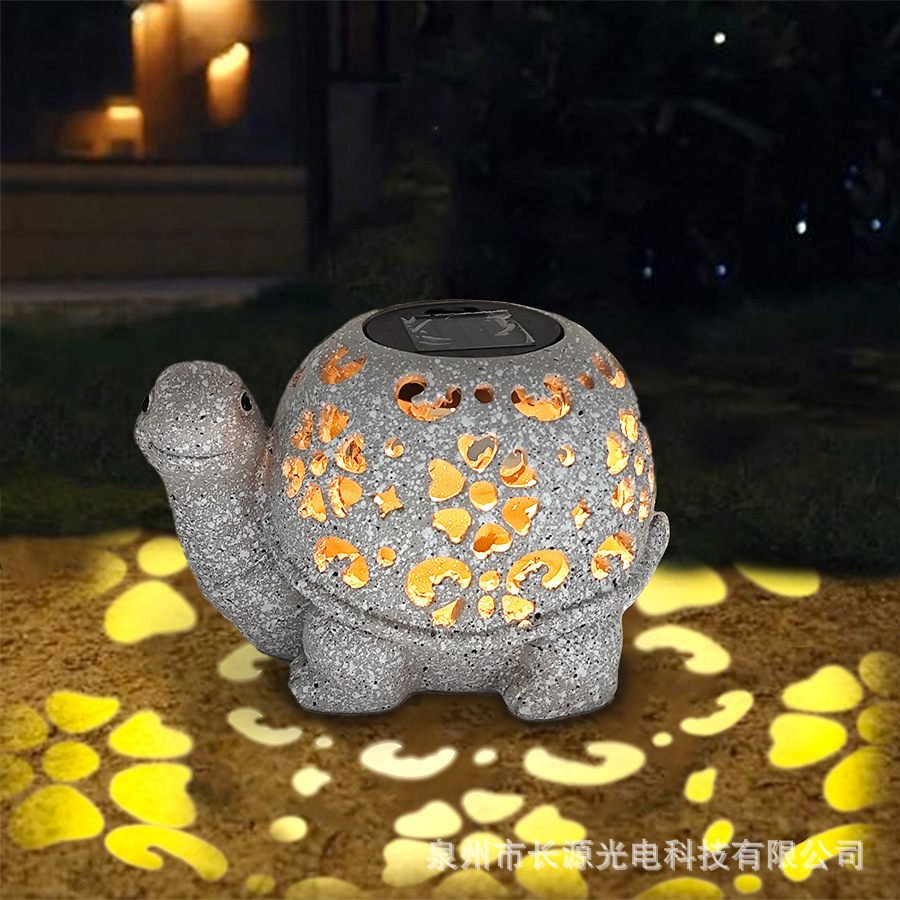 국경 간 안뜰 잔디 장식 태양 중공 거북이 정원 빛나는 장식품 분위기 프로젝션 수지 공예