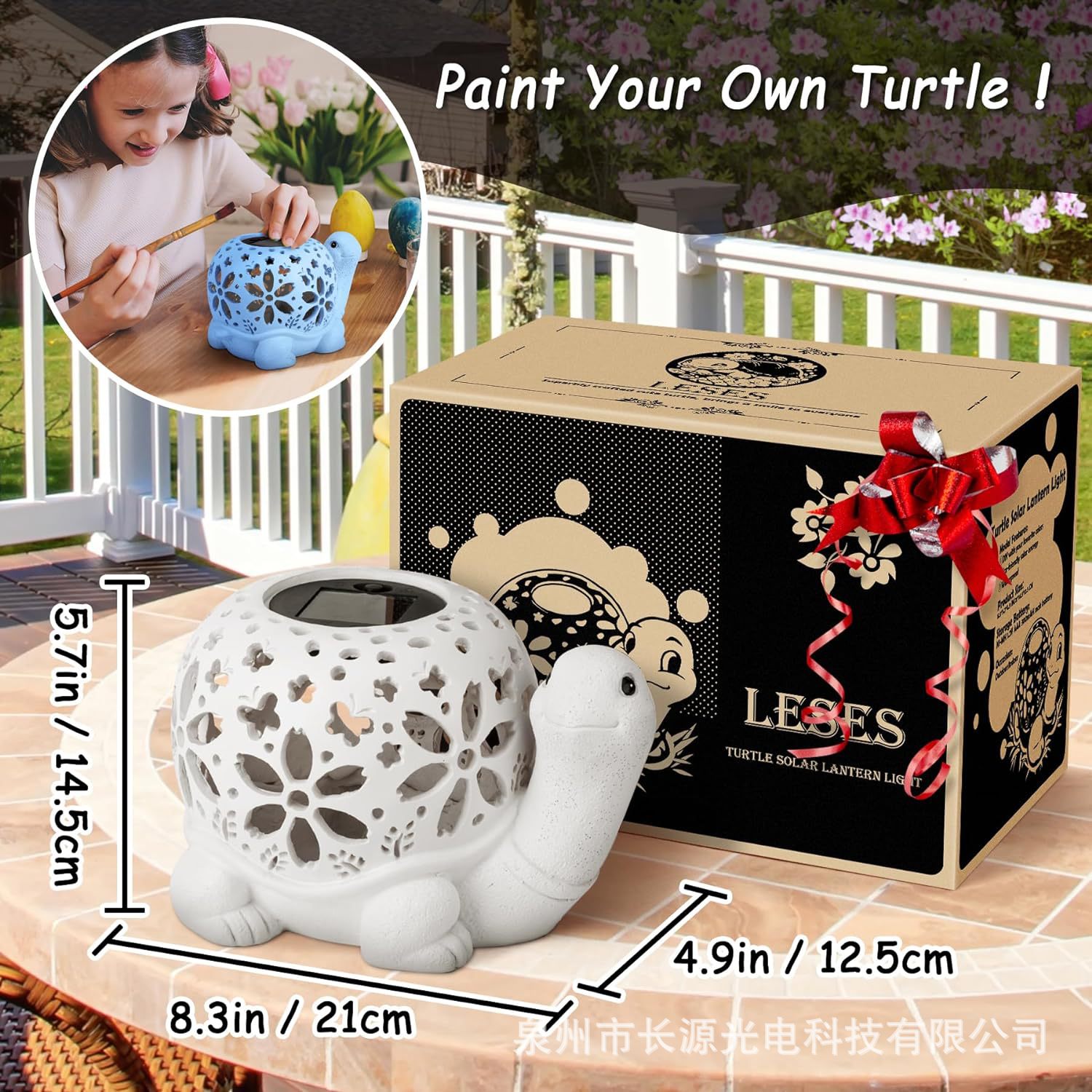 국경 간 안뜰 잔디 장식 태양 중공 거북이 정원 빛나는 장식품 분위기 프로젝션 수지 공예스토어 가기
