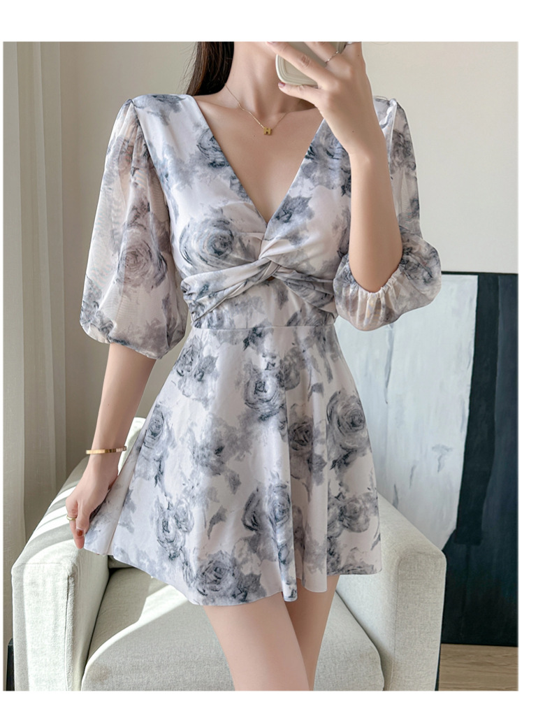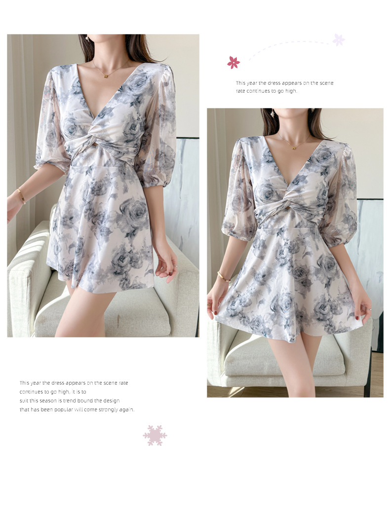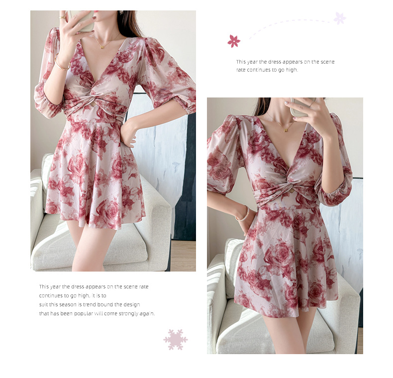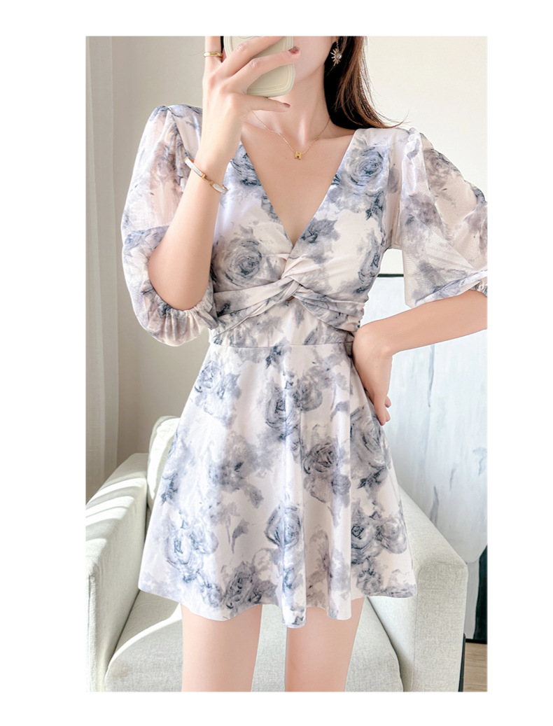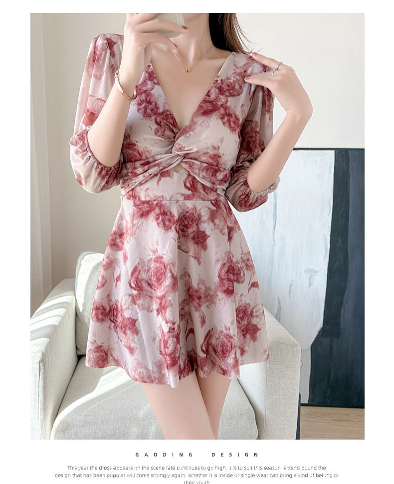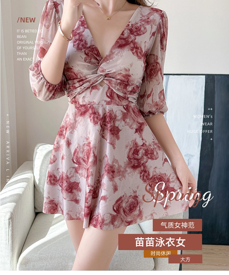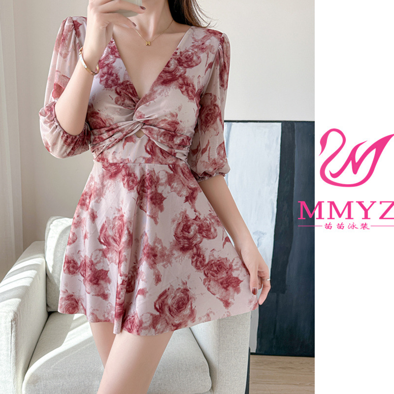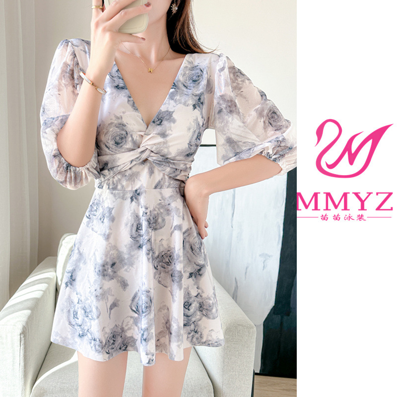 [칭이 우아함] 온천 수영복 여성 결합된 플랫 코너 대형 스커트 뒤덮은 배꼽 한국 보수 고급 수영복스토어 가기