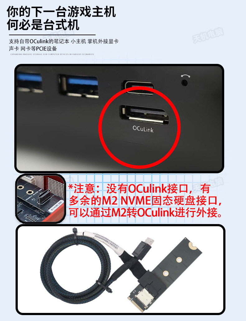 OCulink 그래픽 도크 노트북 휴대용 외부 그래픽 카드 M2 그래픽 도크 전원 PCIE 4.0 작은 호스트