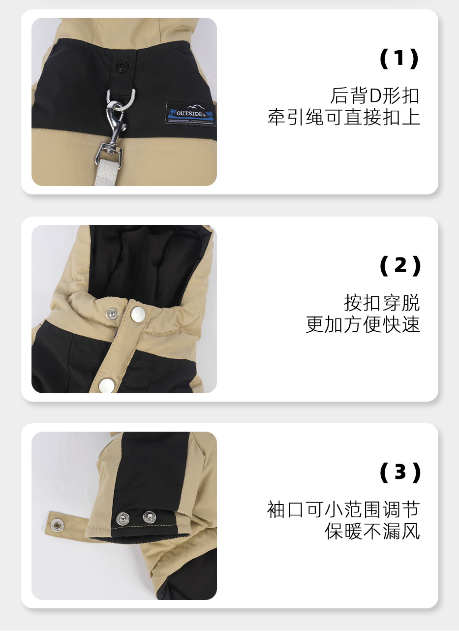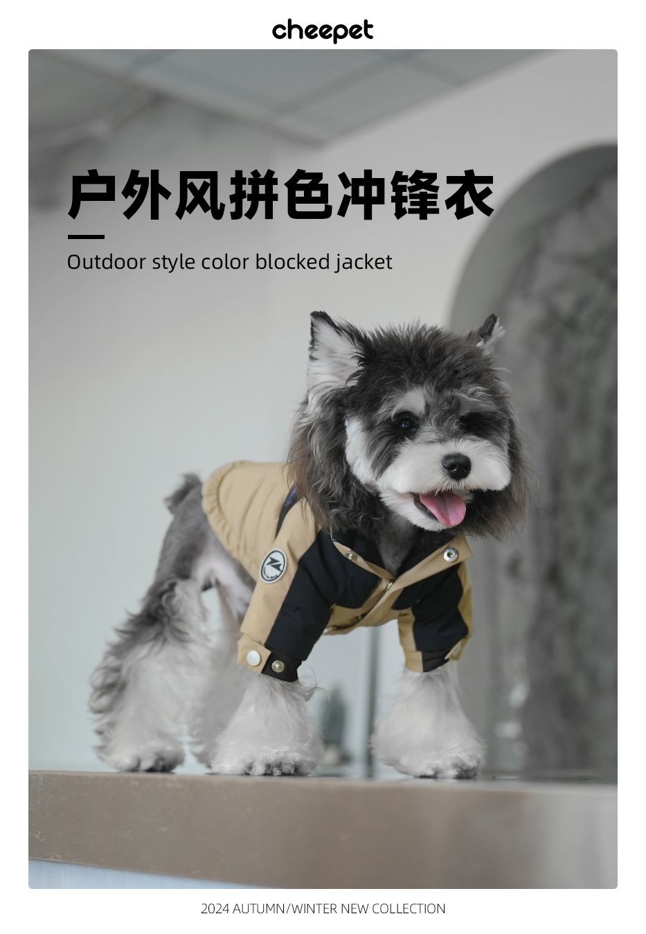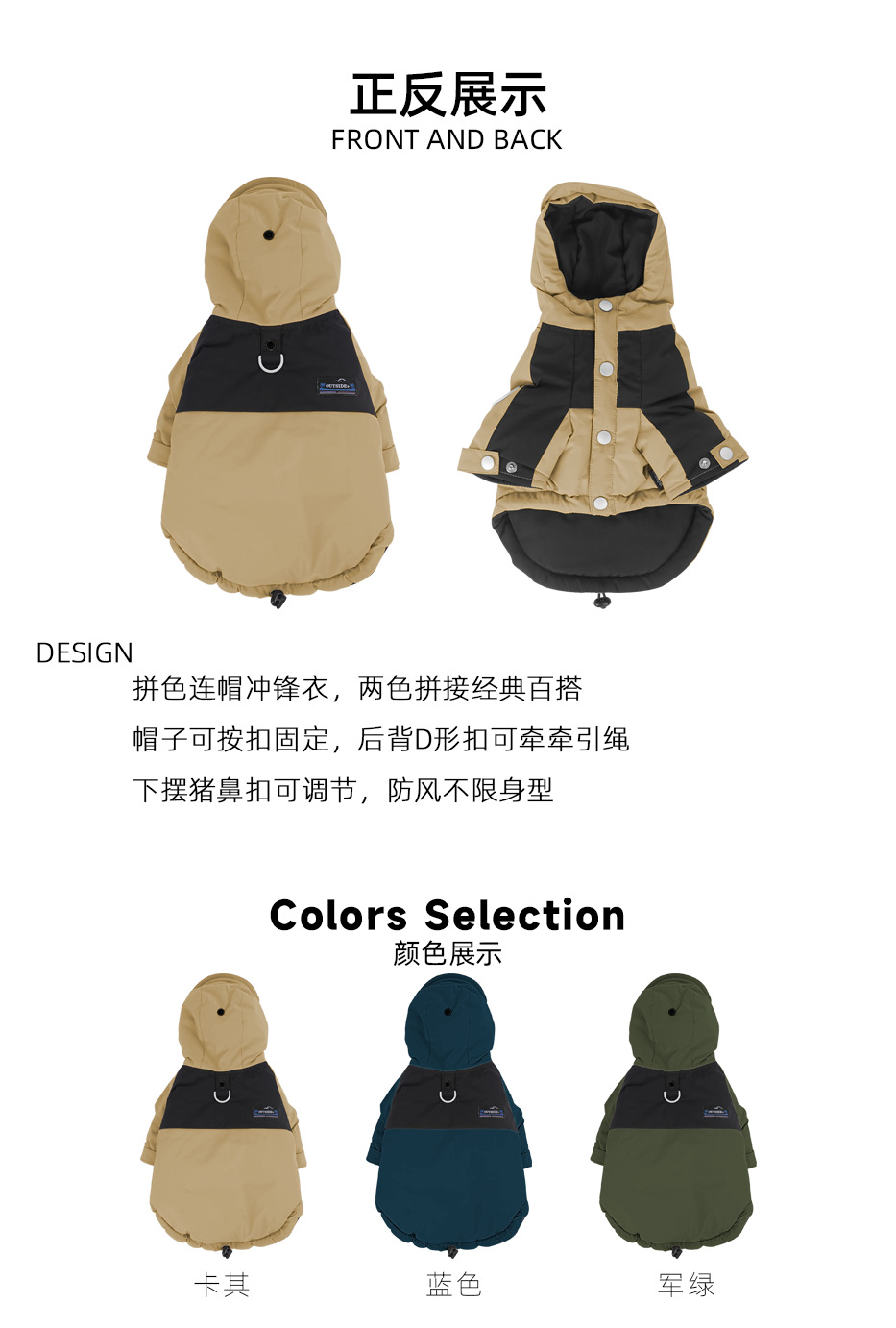 큐파이 강아지 가을 겨울 애완동물 옷 야외 스타일 배색 보온 재킷 두 다리 끈 연결 가능 의류스토어 가기