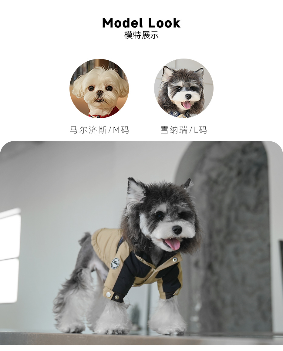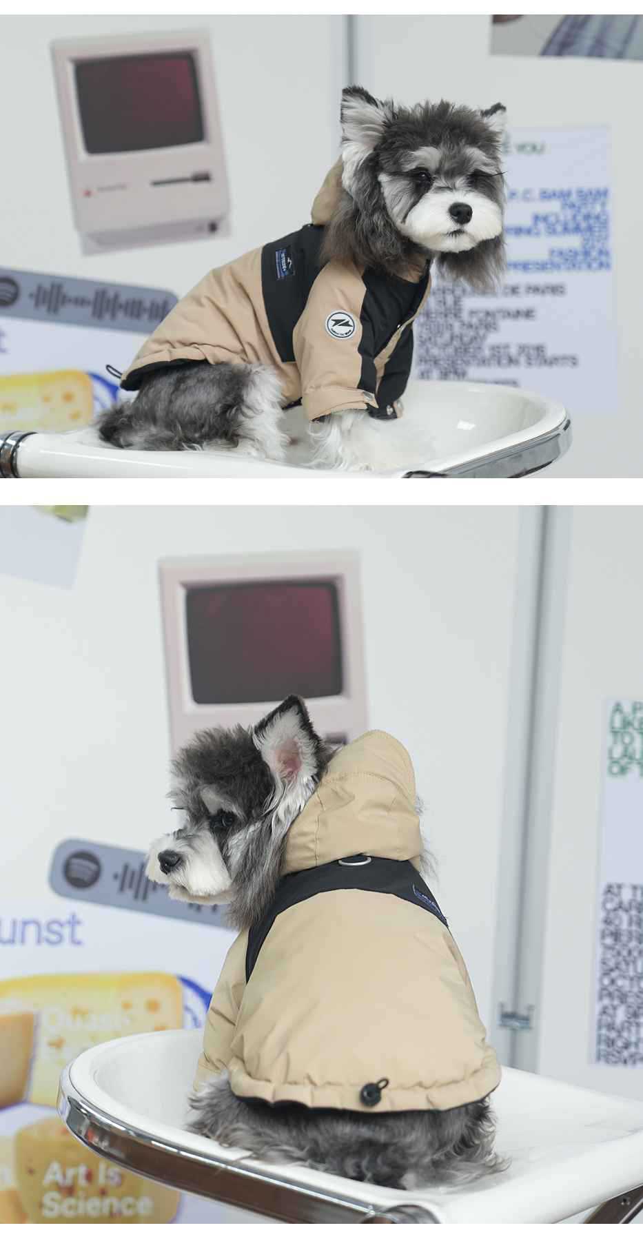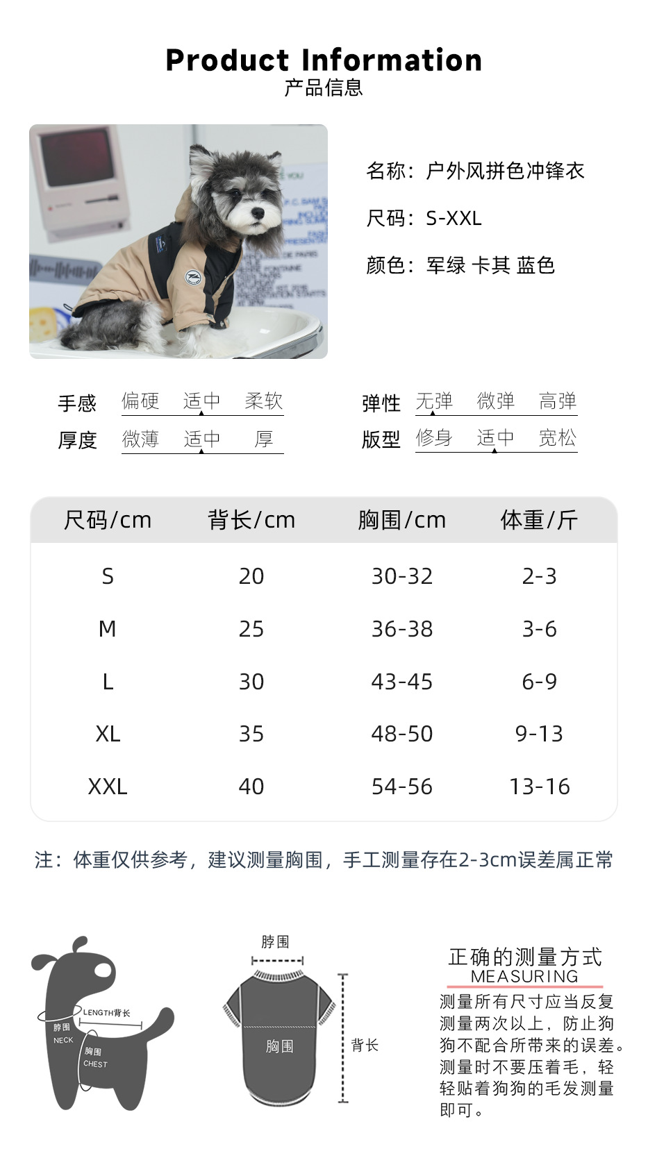 큐파이 강아지 가을 겨울 애완동물 옷 야외 스타일 배색 보온 재킷 두 다리 끈 연결 가능 의류스토어 가기