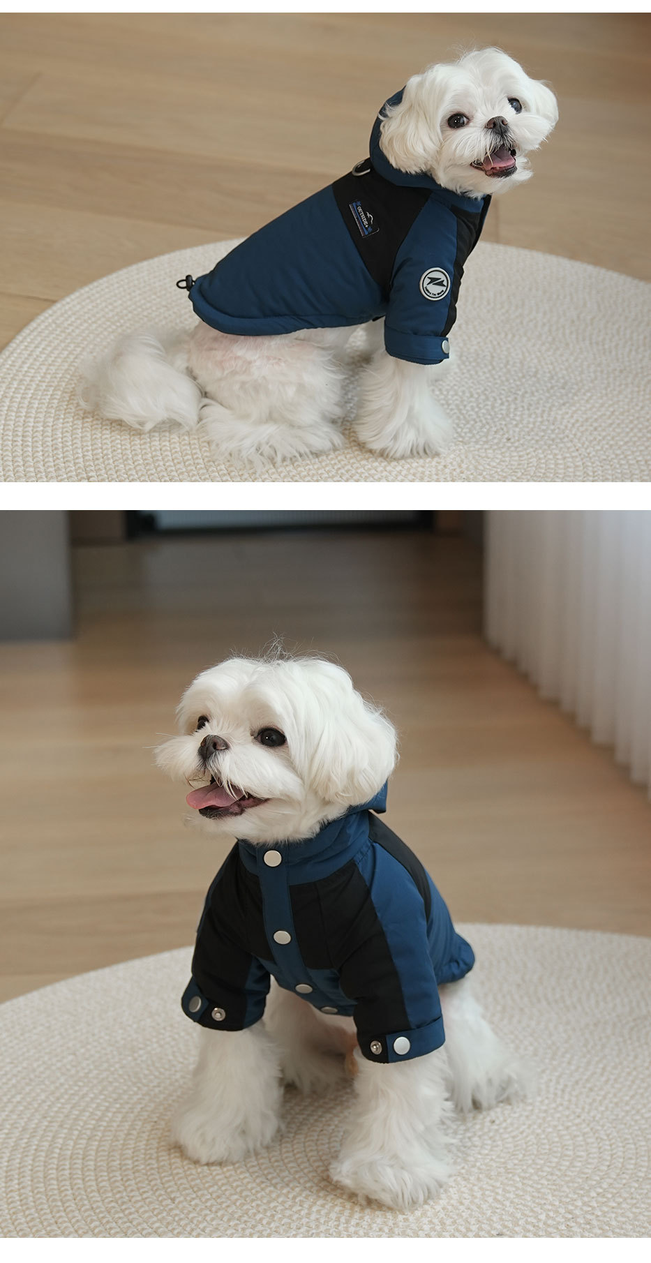 큐파이 강아지 가을 겨울 애완동물 옷 야외 스타일 배색 보온 재킷 두 다리 끈 연결 가능 의류