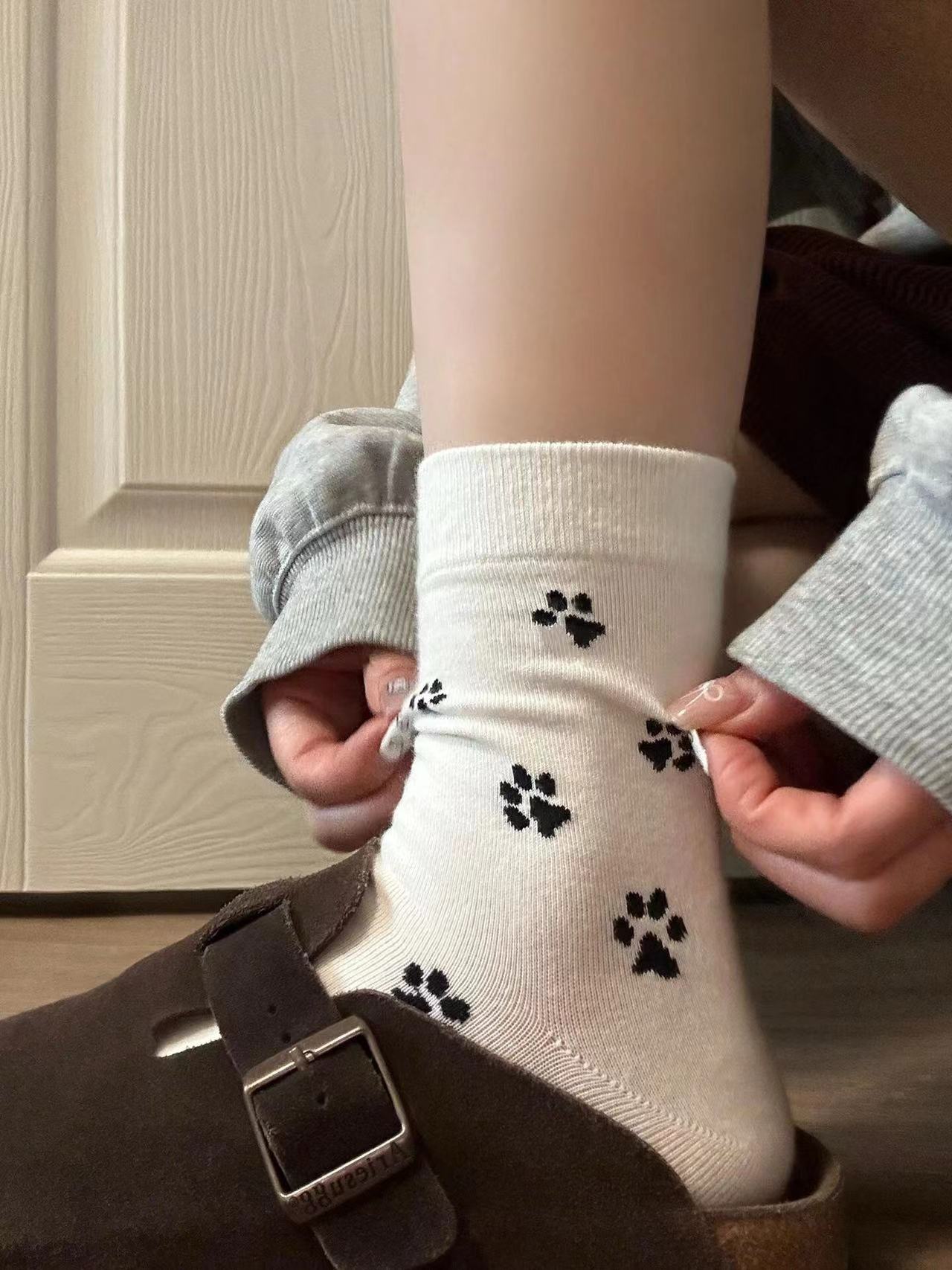 오, 아기 개 발 프린트 와와! 너무 귀여운 루아 만화 양말 고양이 발톱 패턴 대학 스타일 스타킹스토어 가기
