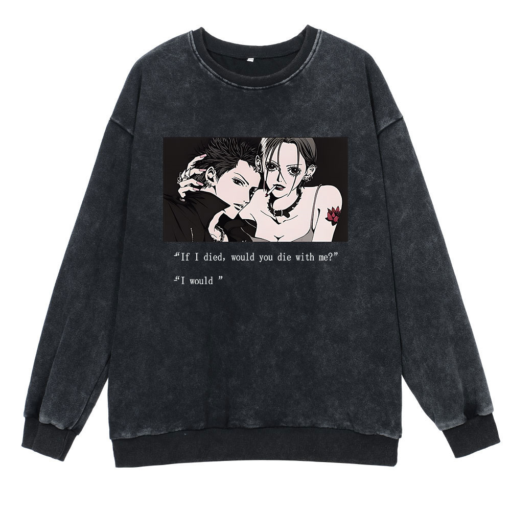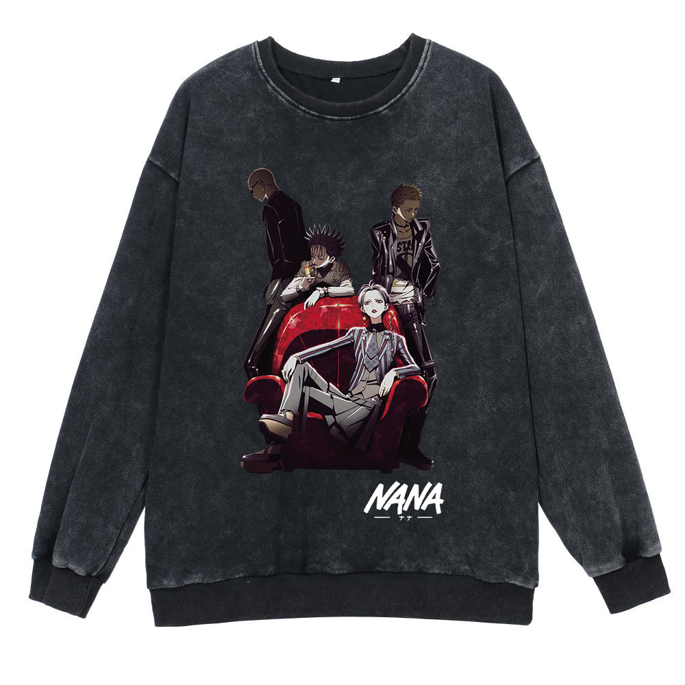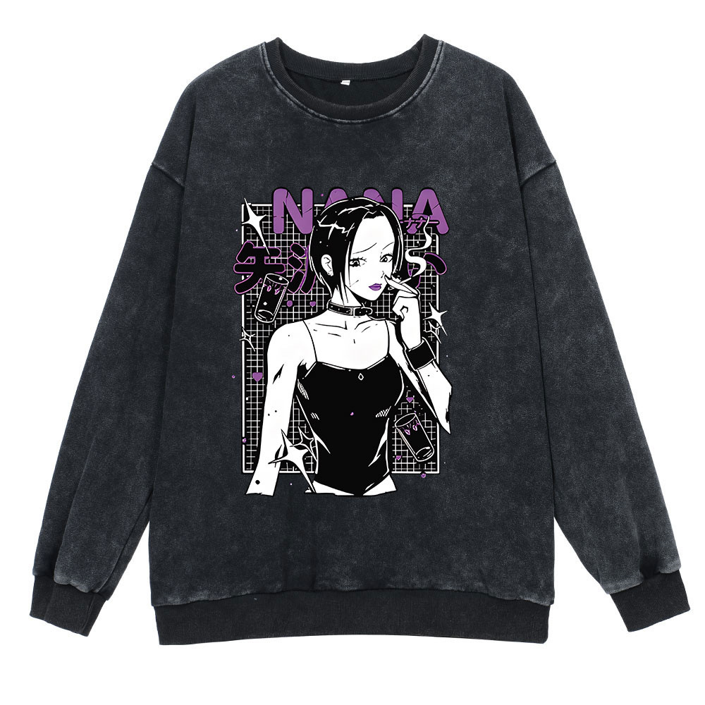 360g 헤비 워시 레트로 스웨트 스트리트 힙합 애니메이션 NANA Nainai Ketong 피겨 면 가을 땀
