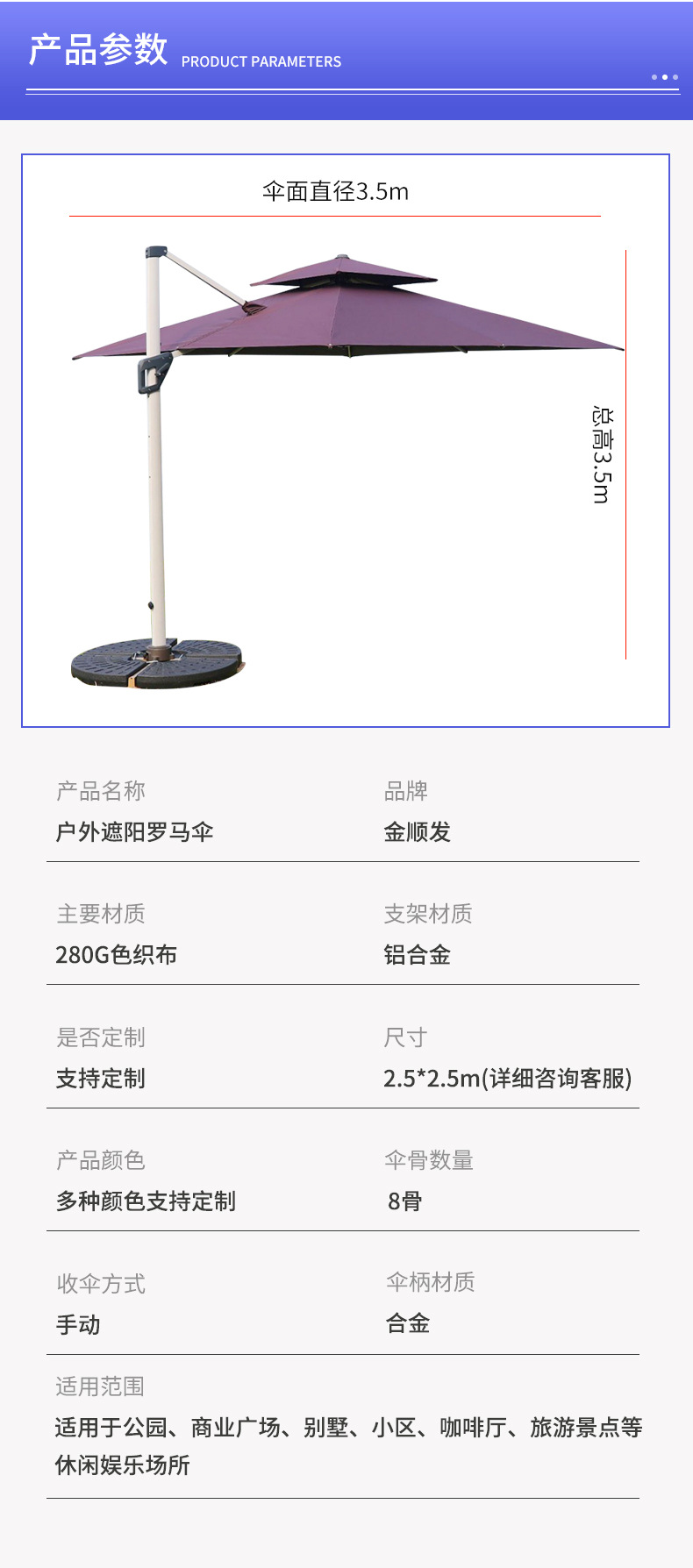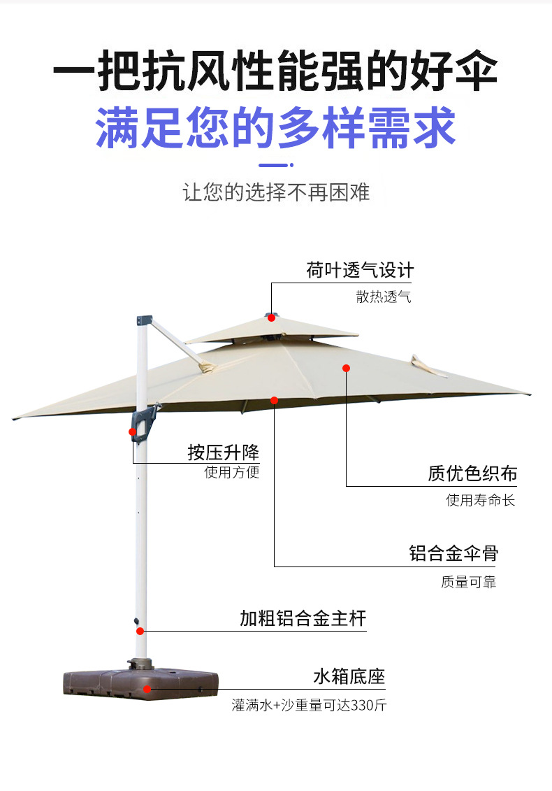 야외 차양 로마 우산 두꺼운 방수 원사 염색 천 8 본 대형 태양 우산 더블 탑 코트야드 카페 사이드 우산