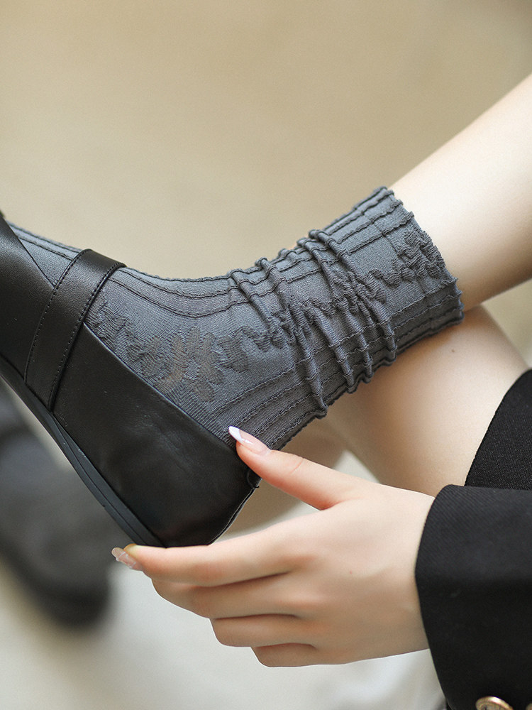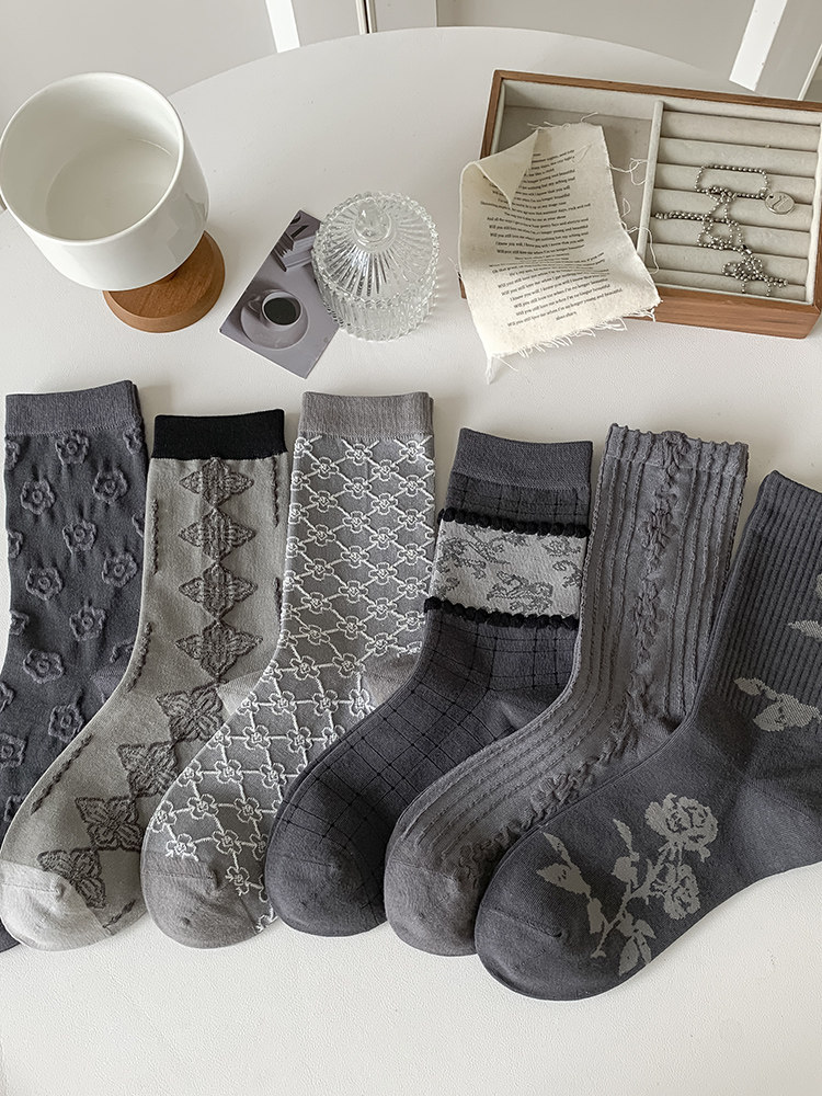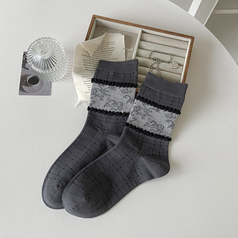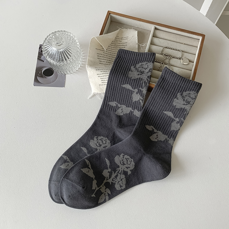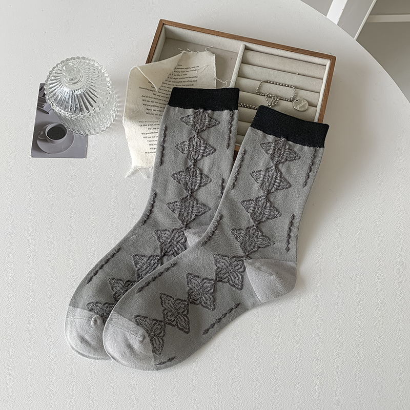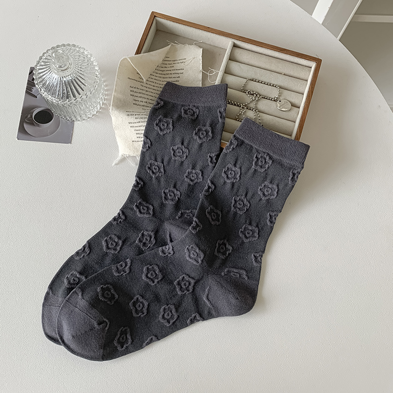 2025년 신상 그레이 시리즈 여성용 가을 겨울 모리 스타일 복고풍 신중국풍 꽃무늬 엠보싱 민족풍 종아리 중간 양말스토어 가기