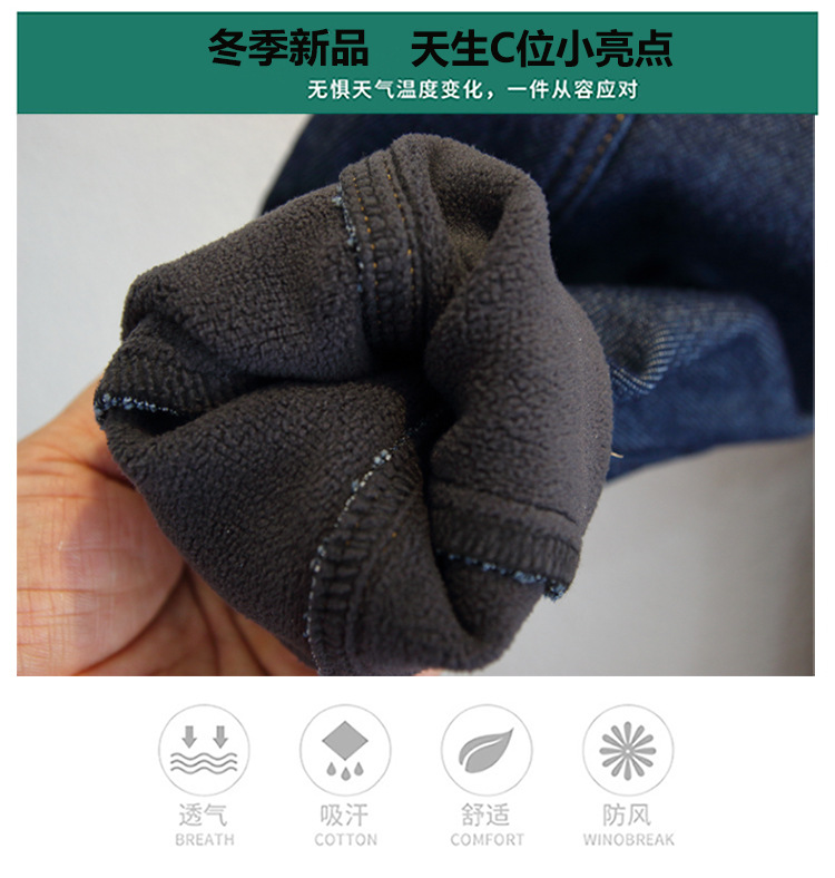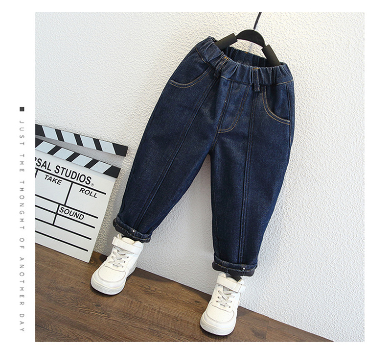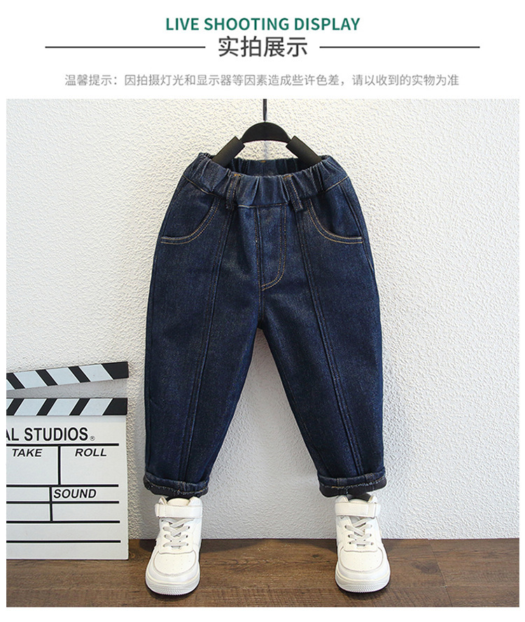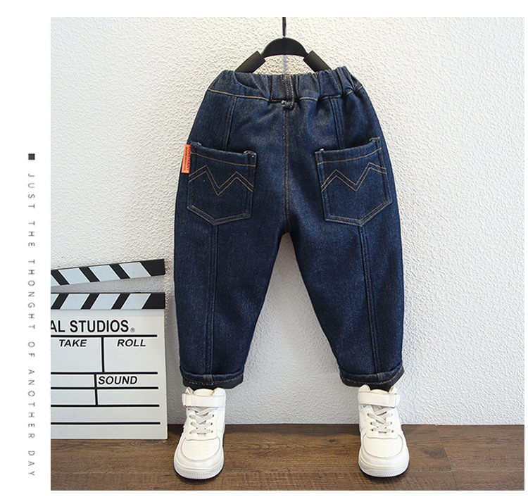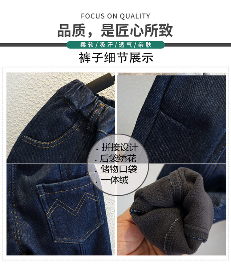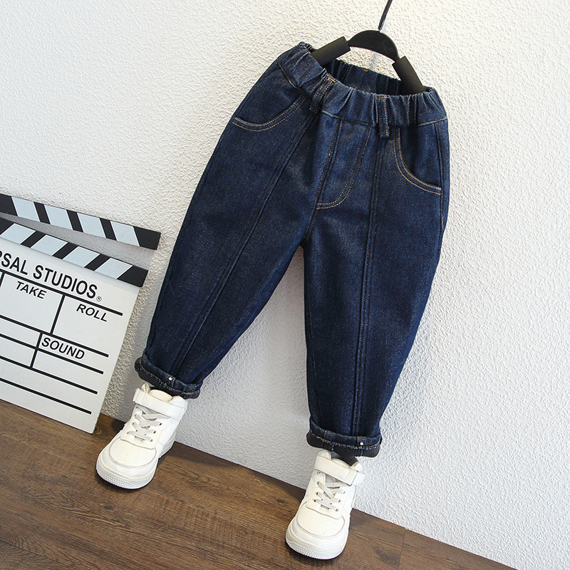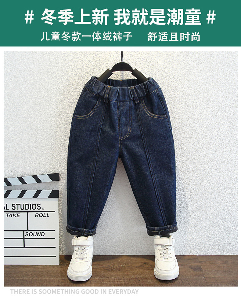 아동복 소년 가을과 겨울 원피스 벨벳 캐주얼 바지 2024 겨울 새로운 서양식 아기 소년 기모 청바지 트렌디스토어 가기