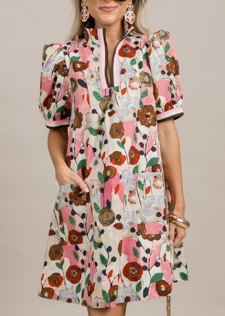 2024 국경 유럽과 미국 여성의 새로운 여름 패션 인쇄 V 넥 퍼프 슬리브 원피스스토어 가기
