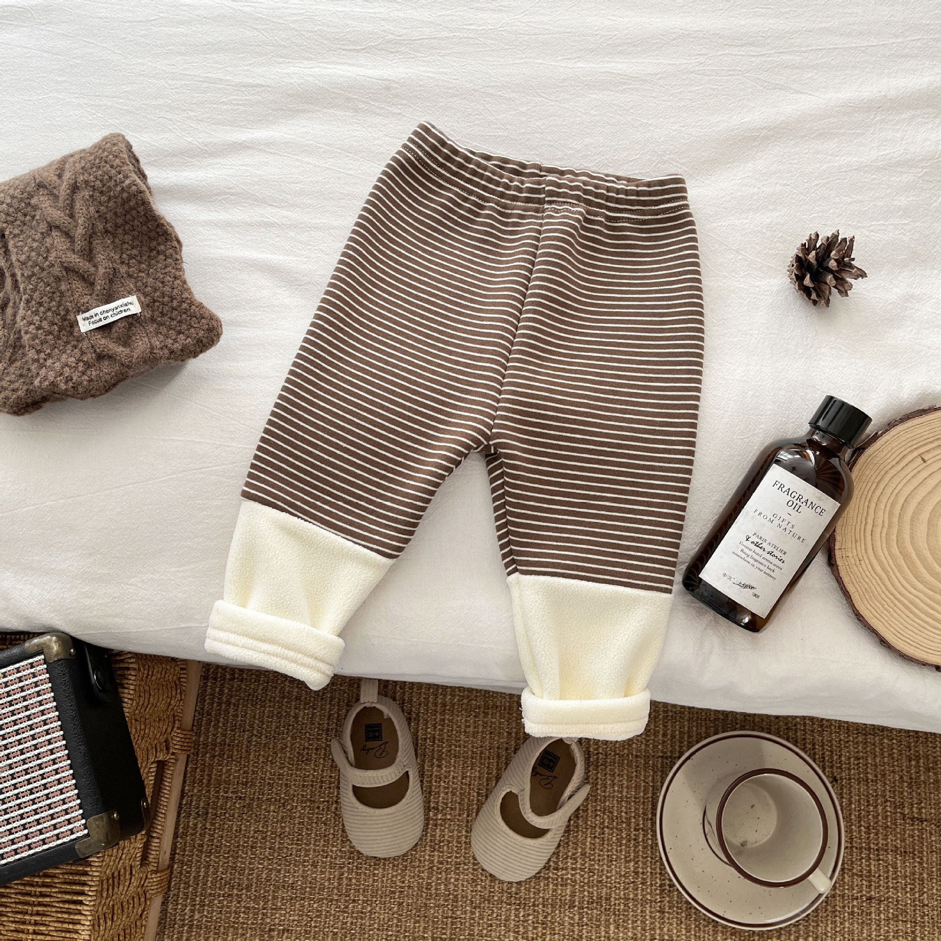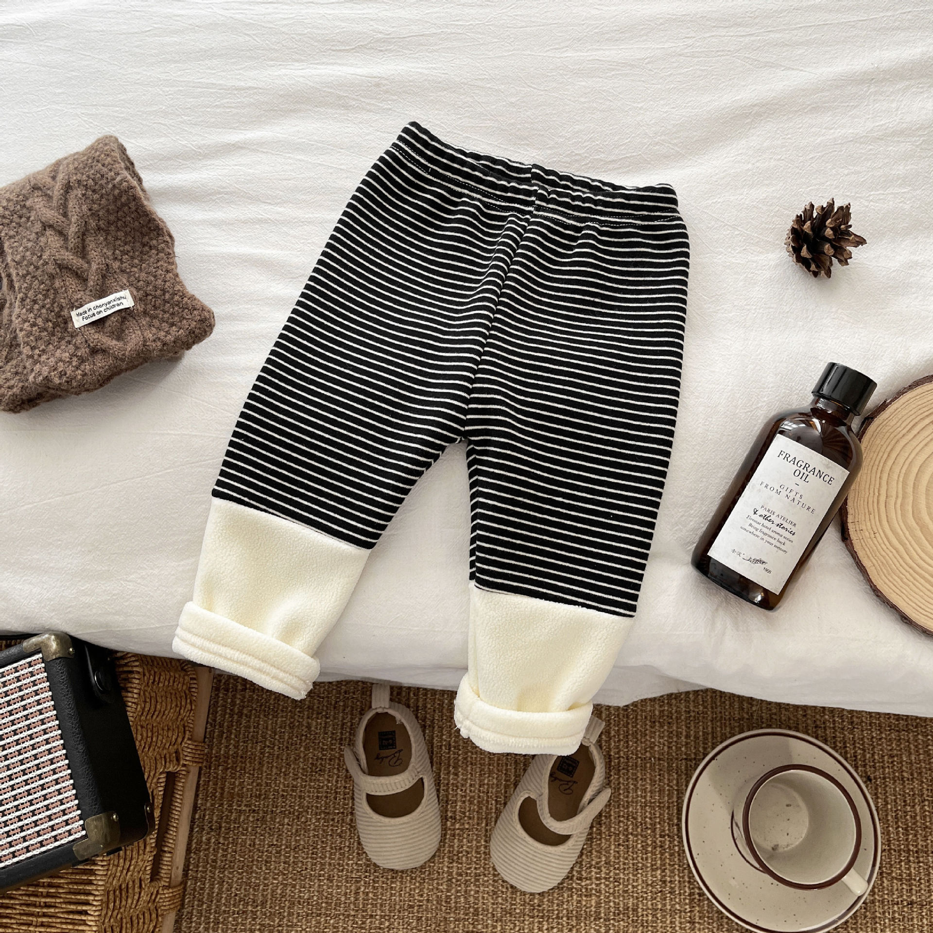 남학생과 여학생을위한 아기의 겨울 기모 레깅스 서양식 줄무늬 두꺼운 바지 아기 바깥 쪽 겨울 따뜻한 바지를 입고