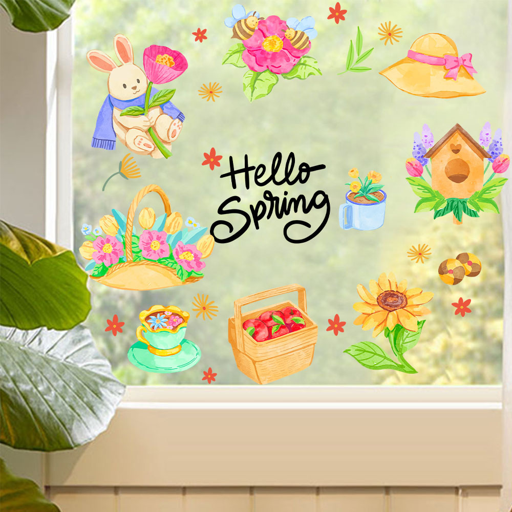Yiyao JD3429 봄 간단한 해바라기 꿀벌 인쇄 창 스티커 어린이 방 대기 유리 정전기 스티커