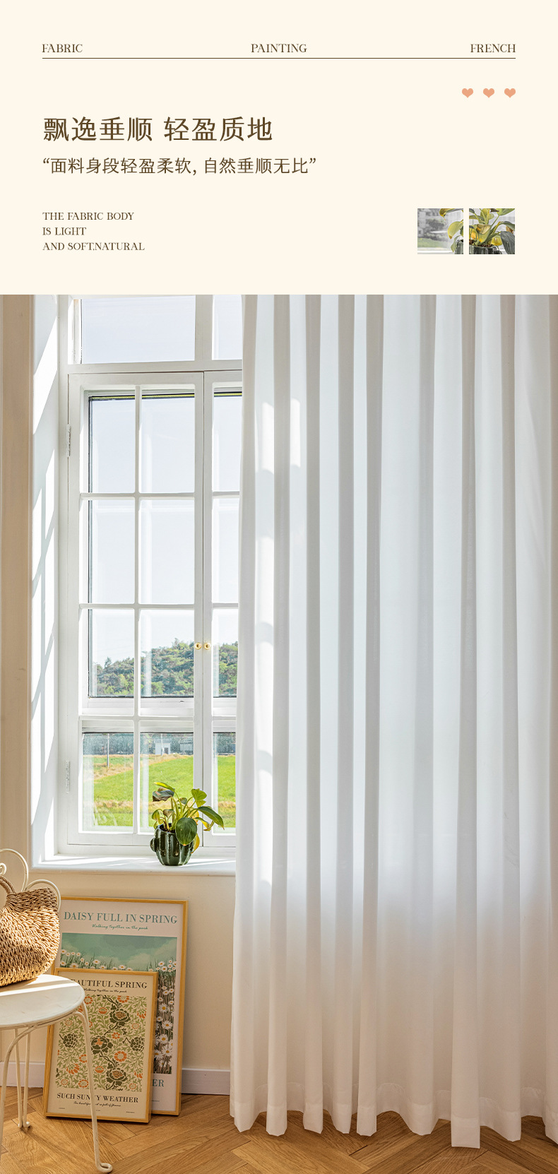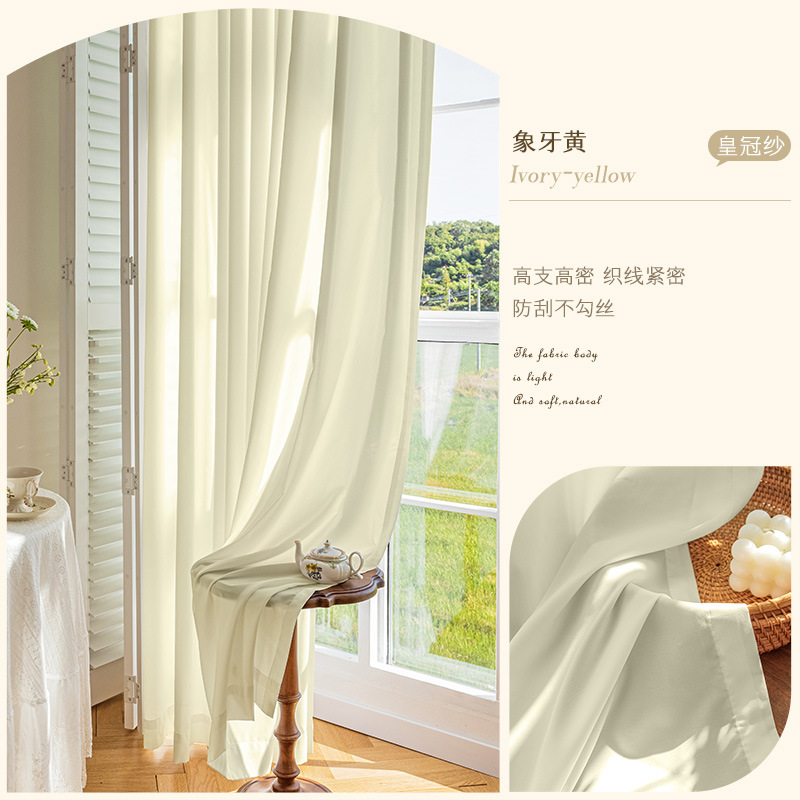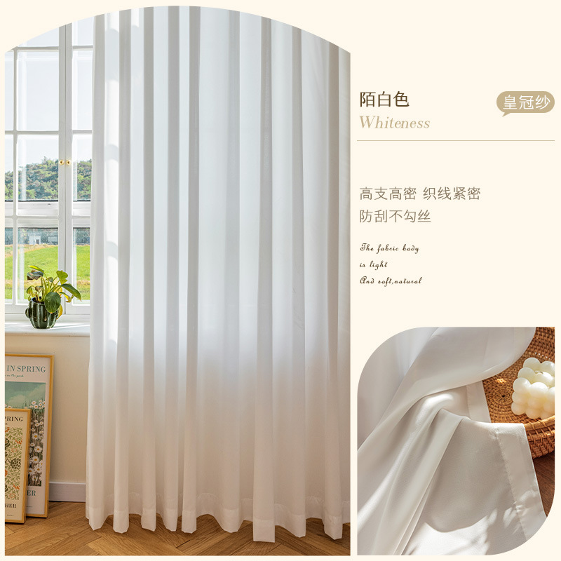 窗纱纱帘透光不透人白色窗帘卧室新款法式白纱金刚皇冠纱飘窗阳台