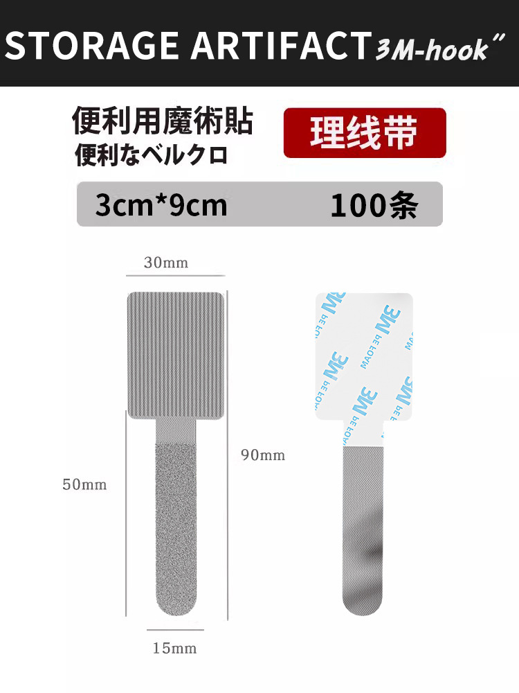 • ↜ ↜ ↜ 회색 접착 벨크로 타이 [100팩] ↴ ↴ ↴