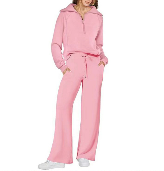 유럽 및 미국 무역 2025 가을 겨울 패션 캐주얼 스포츠 세트 지퍼 긴팔 스웨트셔츠 와이드 팬츠 투피스 여성용