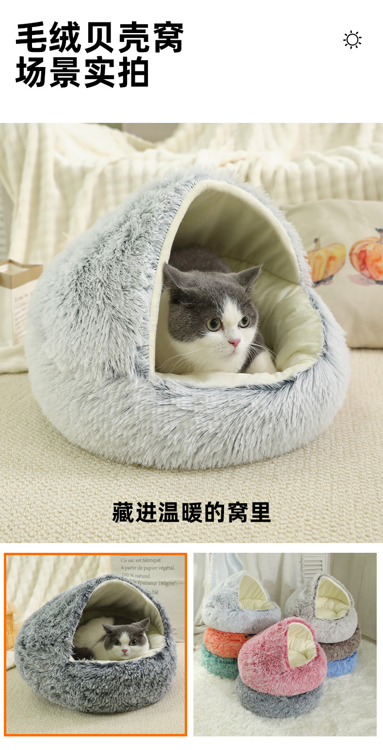 고양이 둥지 가을과 겨울 따뜻한 반 폐쇄 고양이 침대 사계절 유니버설 커버 쉘 둥지 겨울 애완 동물 용품 도매스토어 가기