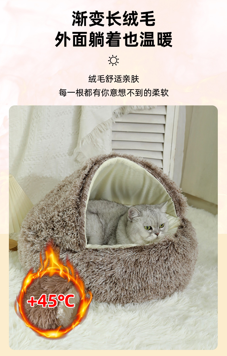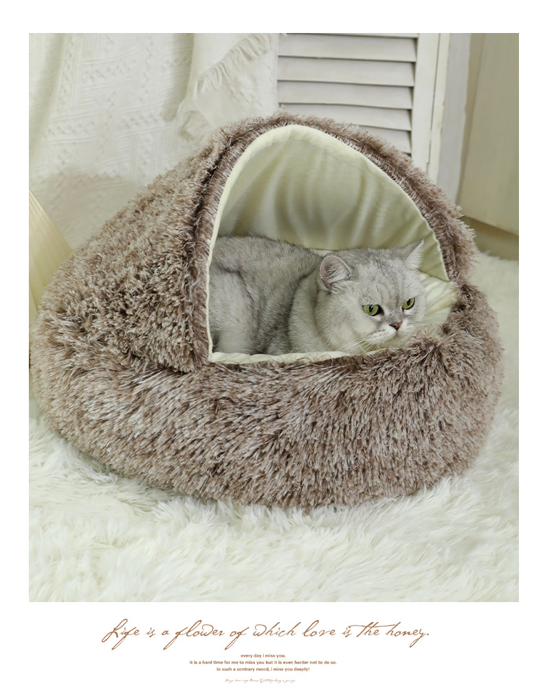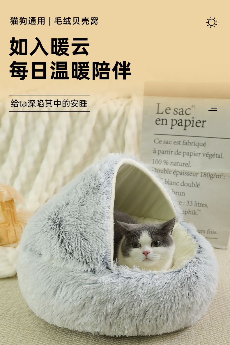 고양이 둥지 가을과 겨울 따뜻한 반 폐쇄 고양이 침대 사계절 유니버설 커버 쉘 둥지 겨울 애완 동물 용품 도매