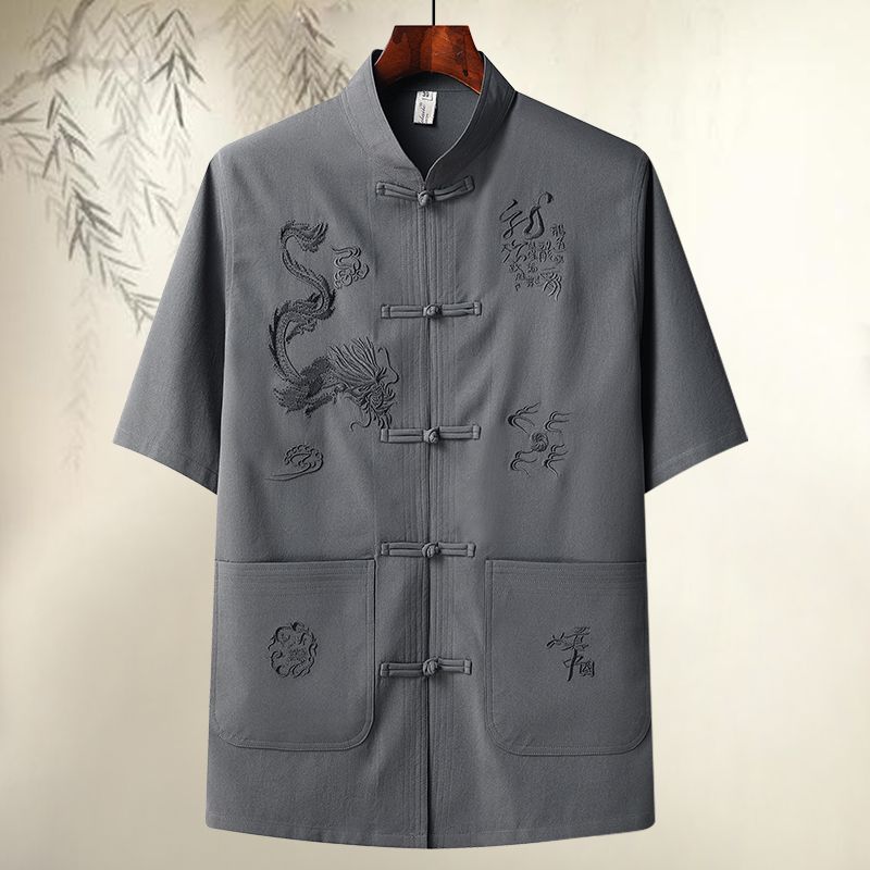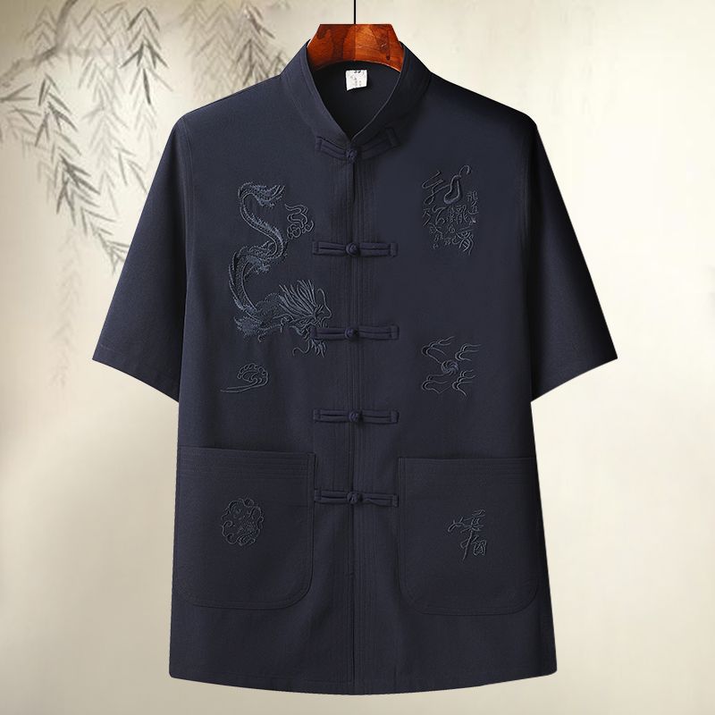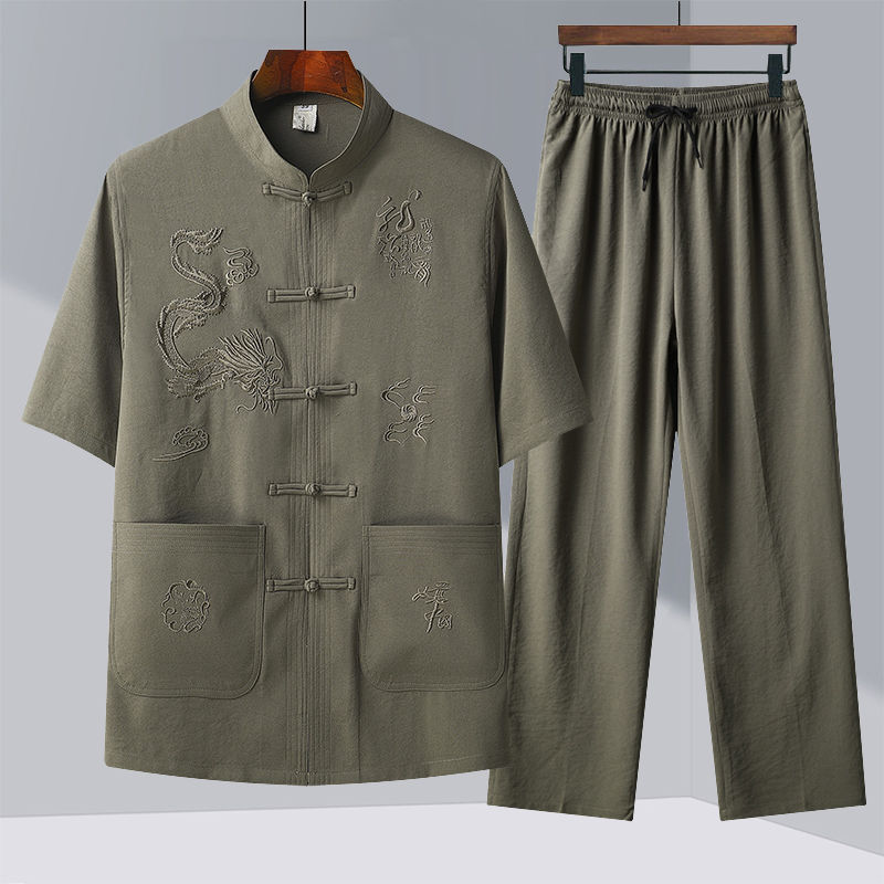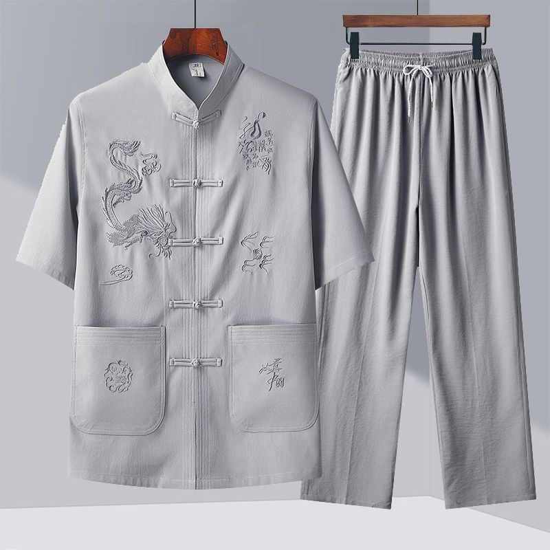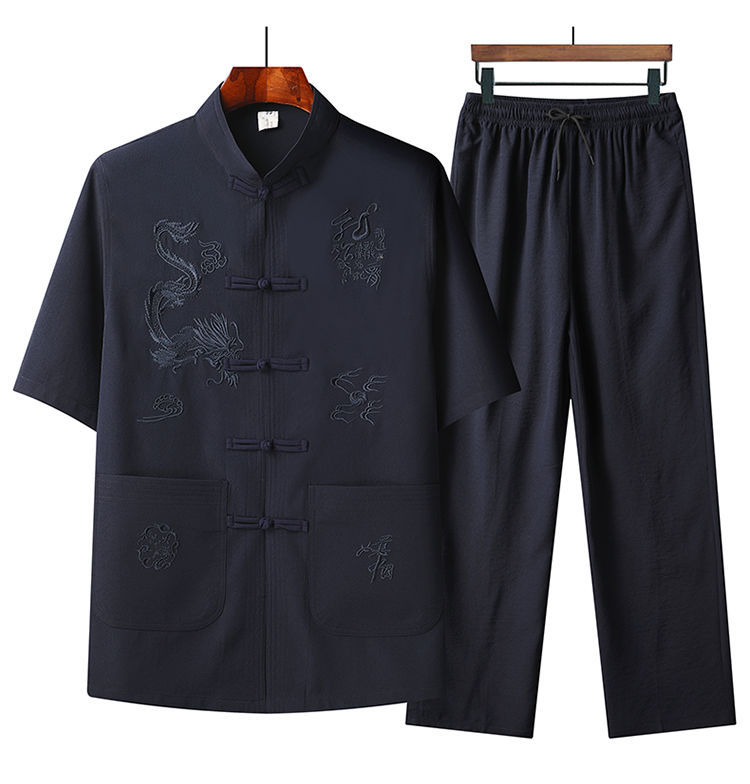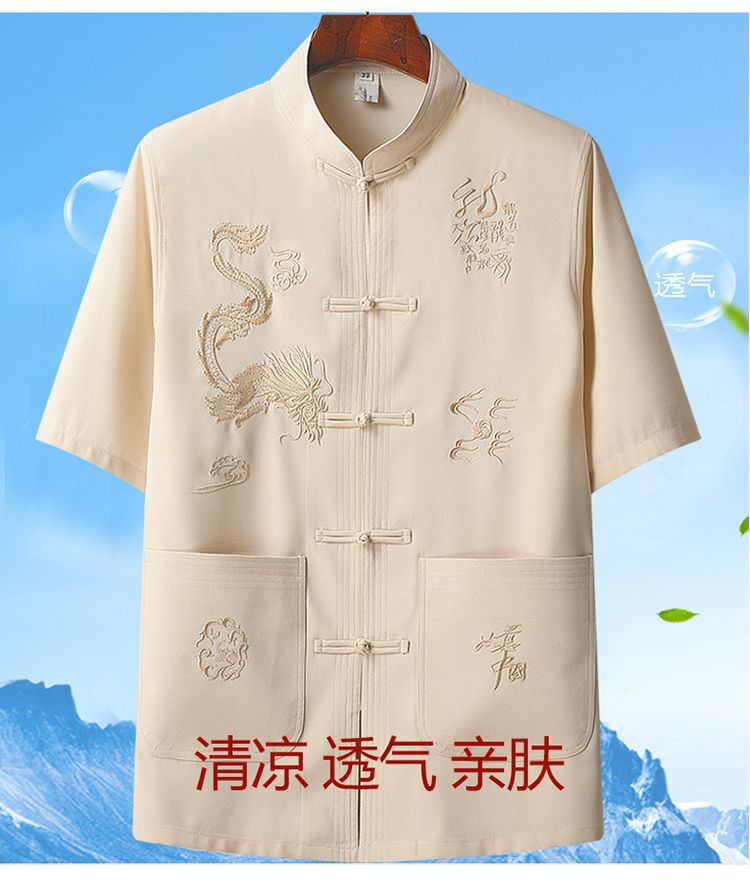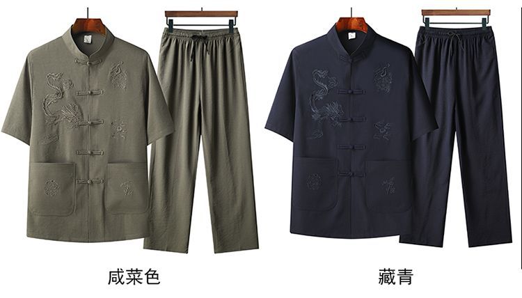 당나라 정장 남성 여름 얇은 중년 및 노인 아빠 여름 정장 할아버지 중국 스타일 중국 스타일 노인 반팔 옷