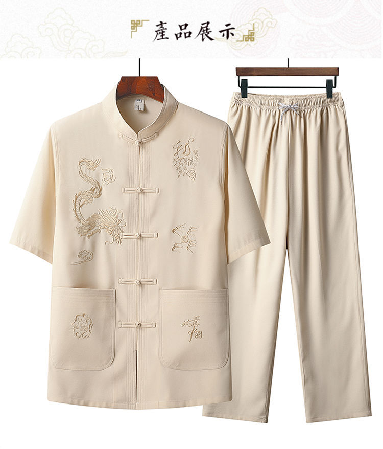 당나라 정장 남성 여름 얇은 중년 및 노인 아빠 여름 정장 할아버지 중국 스타일 중국 스타일 노인 반팔 옷스토어 가기