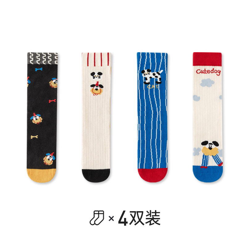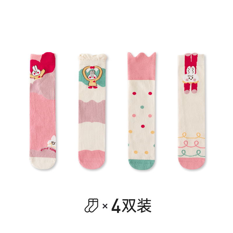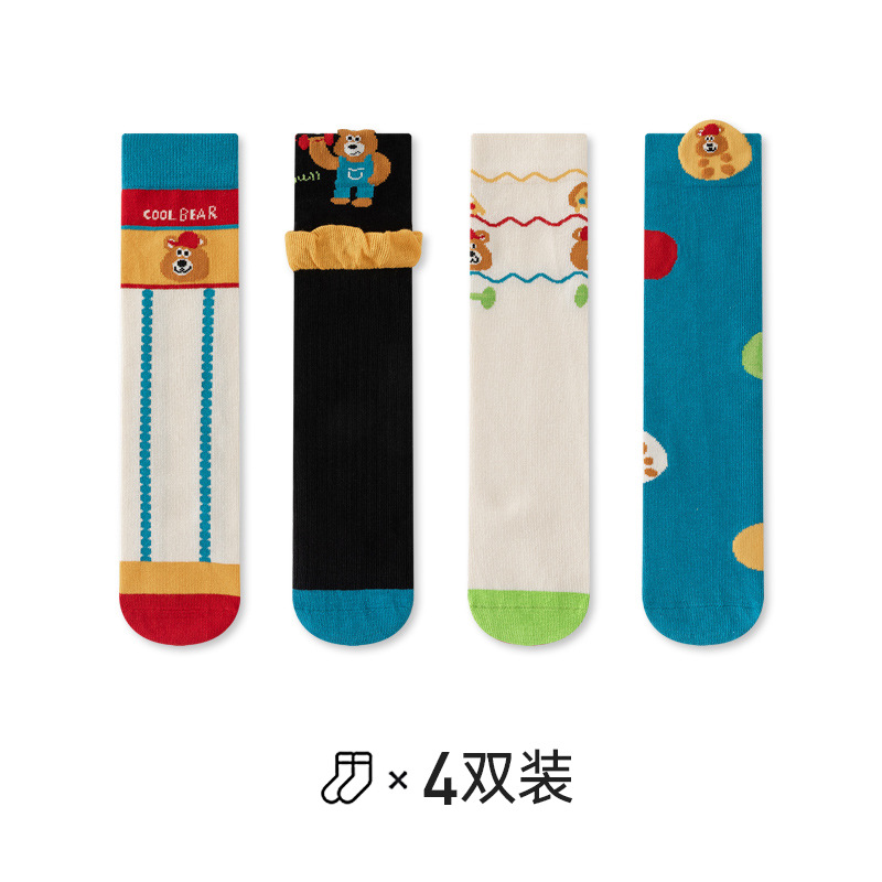 2024 가을 겨울 새 만화 긴 배럴 핫 스포츠 남녀 어린이 땀 흡수 통기성 한국면 뼈없는 양말스토어 가기