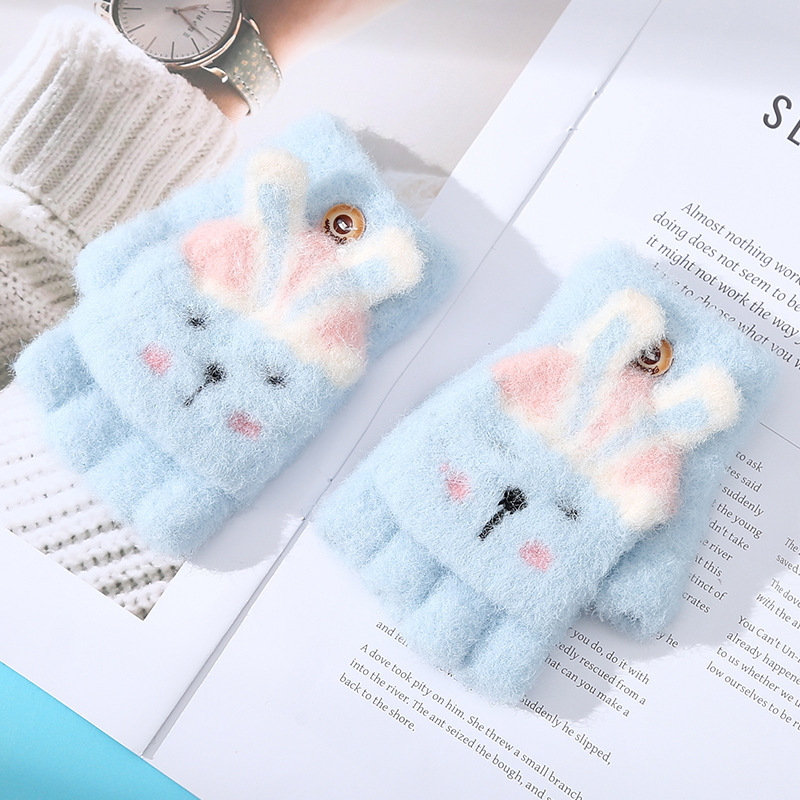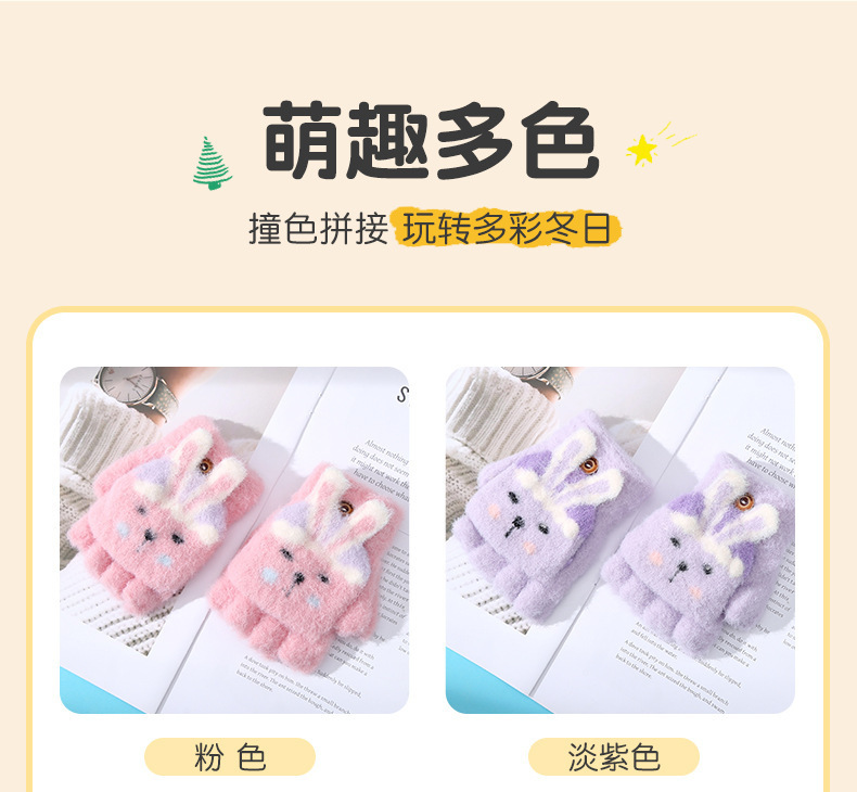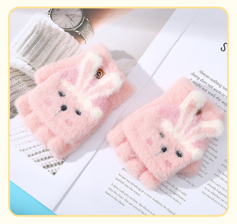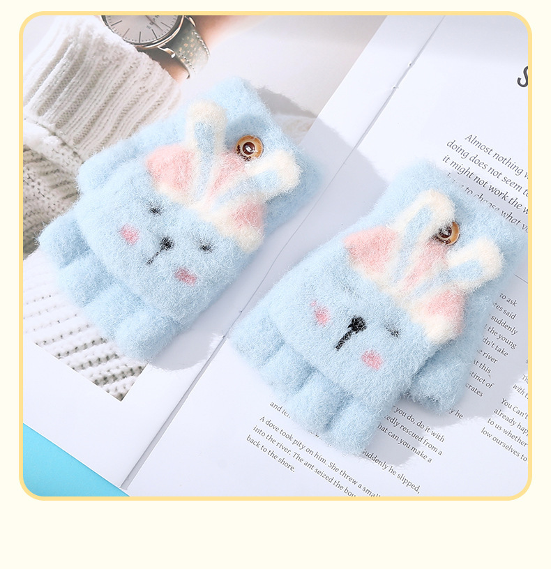 새로운 만화 귀여운 작은 소녀 겨울 따뜻한 장갑 야외 사이클링 감기 방지 아기 쓰기 반 손가락 플립 커버