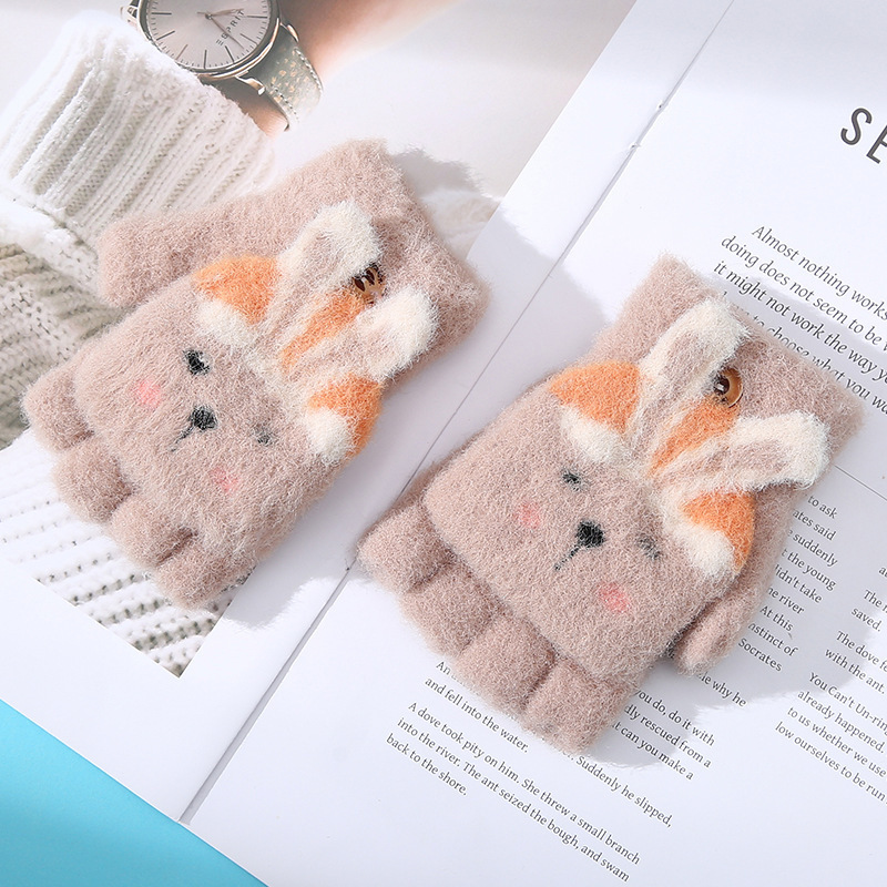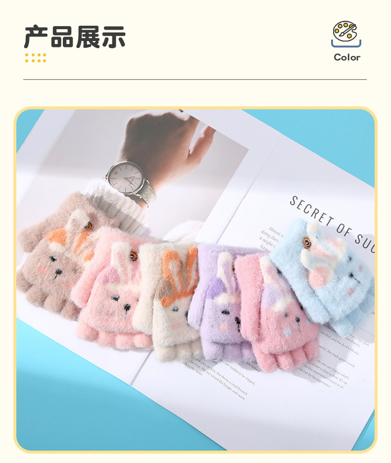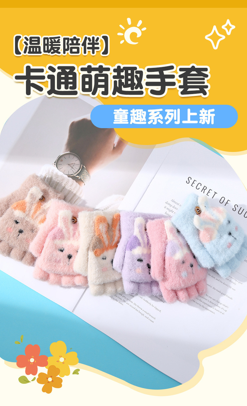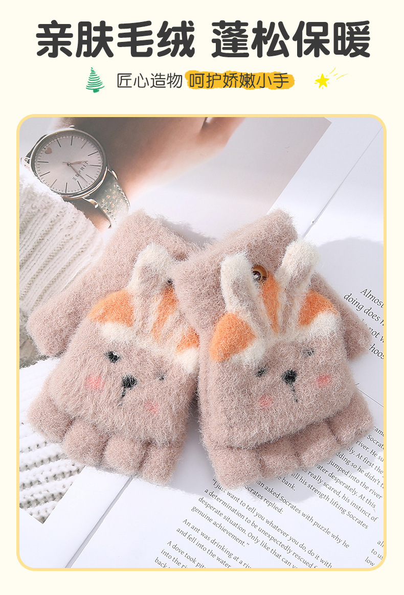 새로운 만화 귀여운 작은 소녀 겨울 따뜻한 장갑 야외 사이클링 감기 방지 아기 쓰기 반 손가락 플립 커버스토어 가기
