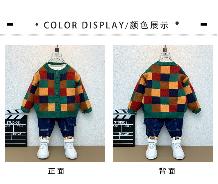 6666 소년 스웨터 재킷 가을, 겨울 2025 새로운 어린이 격자 무늬 카디건 소년 가을 니트 스웨터스토어 가기