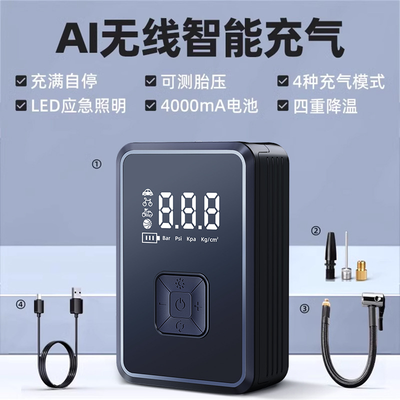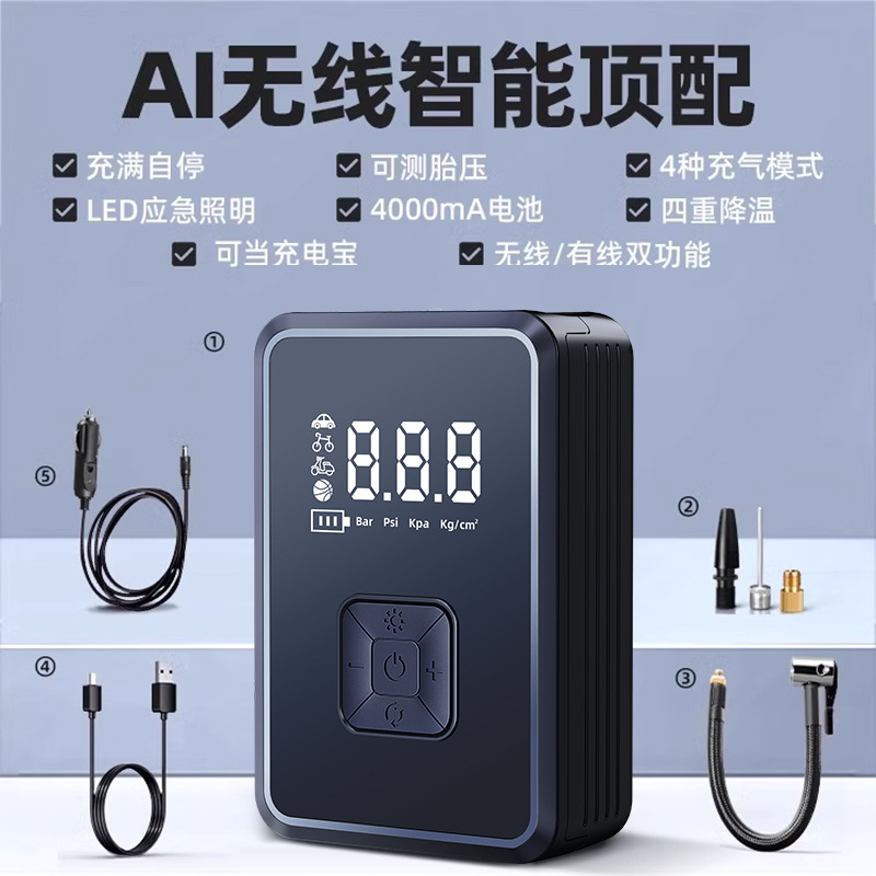 • [서징 무선 상위 구성] 무선/유선 이중 기능/보조 배터리로 사용 가능/완충 시 자동 정지/타이어 공기압 정밀 측정